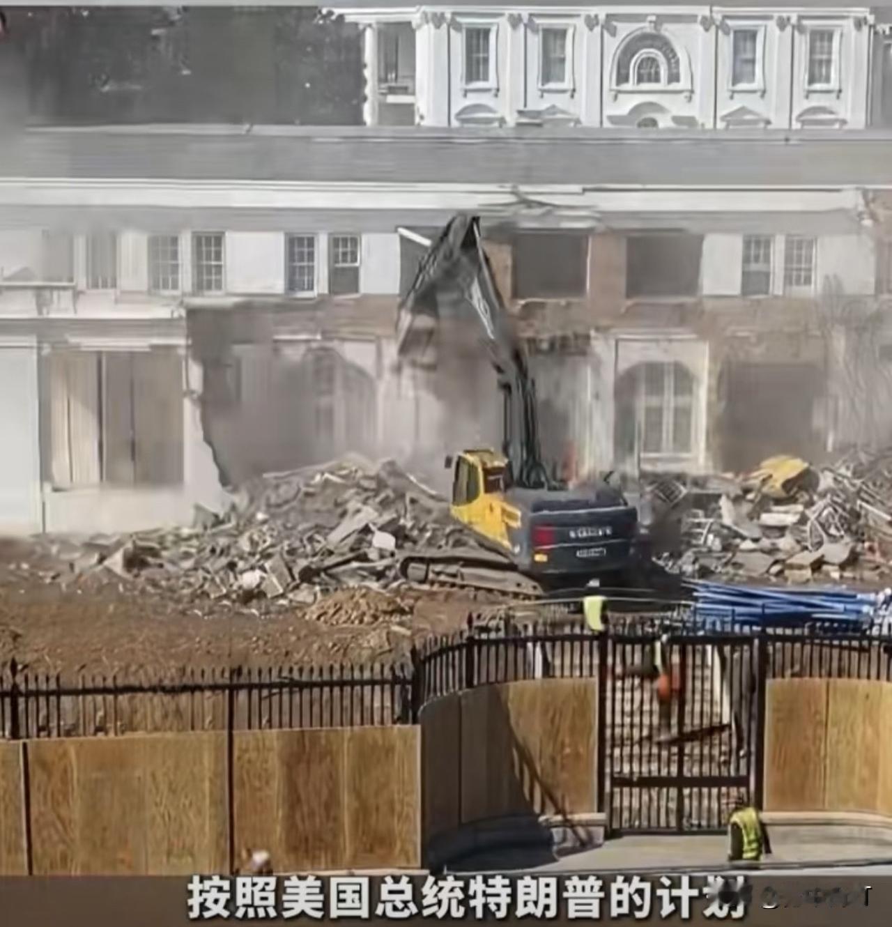 特朗普真拆了白宫!东翼变身2.5亿豪华宴会厅 挖掘机直接凿进白宫东翼墙壁,历史建筑为奢华宴会厅让路,这惊人一幕正在华盛顿上演。 今天一早,白宫传来的不是政策宣示,而是施工队的机械轰鸣声,特朗普总统力推的国家宴会厅项目正式动工,施工人员开始拆除白宫东翼建筑。 看着现场照片里被挖出大窟窿的东翼外墙,让人不禁愣住,这位总统还真是说到做到。 百年东翼的终结! 这个被拆的东翼来头不小。它建于1902年,1942年加了第二层,成为第一夫人办公室所在地。 而取代它的将是一个约9万平方英尺(约8361平方米)的“国家宴会厅”,能容纳约650人。耗资高达2-2.5亿美元,由特朗普和未公开的捐赠者私人出资。 特朗普在Truth Social上兴奋地宣布:“我终于很荣幸成为推进这一必要项目的第一位总统。” “私人俱乐部”风格 从白宫发布的设计图来看,新宴会厅将充满特朗普标志性的奢华风格——金色镶板、水晶吊灯、大理石地板。 英国媒体直接形容这种风格是“凡尔赛宫遇见拉斯维加斯”,金光闪闪。 尽管特朗普曾保证项目“不会干扰现有建筑”,但东翼被大规模拆除的画面引发哗然。 白宫通讯主任史蒂文·张回应批评者为“杞人忧天的失败者”。而特朗普政府则表示,东翼将在这一过程中被“全面现代化”,并会“比以往更加美丽”。 看着白宫施工现场的照片,一位网友感叹道:“特朗普正在拆毁白宫,无论是字面意义还是象征意义。” 白宫这座百年建筑正在改变模样,不知道这是总统的任性,还是历史的必然? 白宫