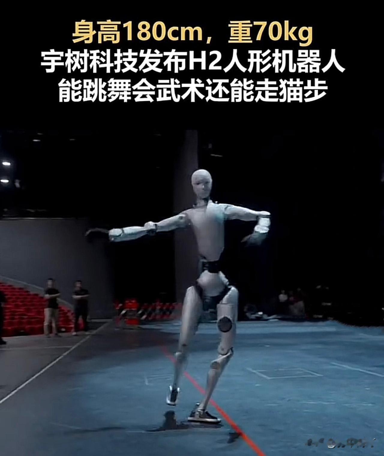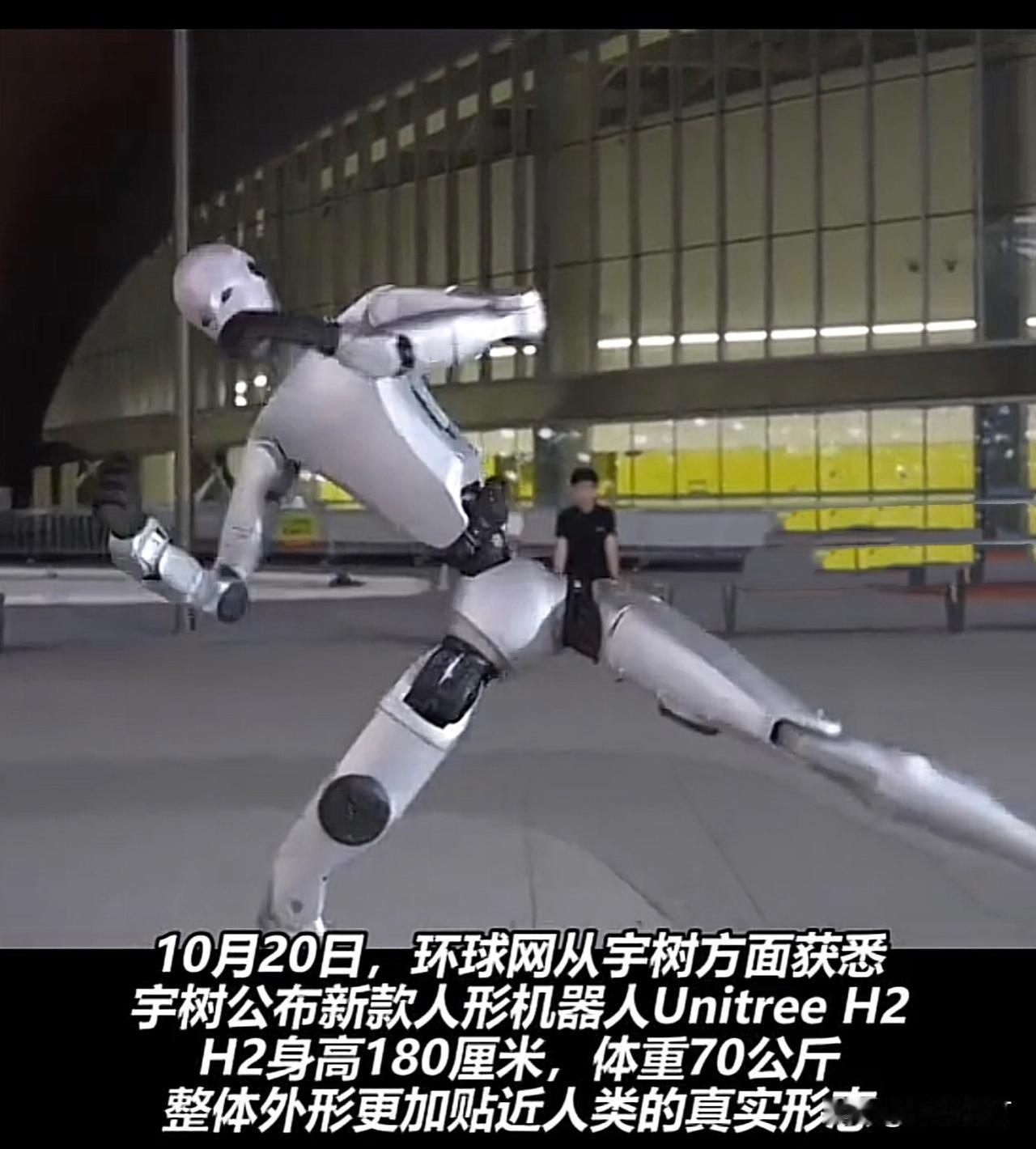 讯报!迅报!宇树科技发布H2仿真机器人, 科技进化速度让人心惊,今天打开手机,宇树科技发布H2仿生机器人的消息刷了屏。最让我惊讶的是,这款机器人居然有了一张仿生人脸,看着官方视频里那张似真非真的面孔,心里莫名有些忐忑——现在的机器人已经进化到这种程度了吗? H2身高180厘米,体重70公斤,尺寸和成年男性差不多,它不再是那种冷冰冰的机械模样,而是穿上了衣服,有了接近人类的外形。 在演示视频中,H2展示了跳舞、武术甚至T台走秀的能力,动作流畅得让人忍不住惊呼! 回想起之前的机器人,要么是笨重的机械体,要么是简单的四足行走。而现在的H2,不仅能灵活地完成复杂动作,还拥有了更具象的“人形”视觉效果。 有业内人士点出了一个关键:“人脸能给人提供情绪价值。” 想想也是,如果机器人始终是个铁疙瘩,我们可能永远觉得它只是个工具。但一旦有了人脸,感觉就复杂起来了。 不过网友们的反应挺有意思。有人开玩笑说“看样子很快就能跳‘四小天鹅’了”,也有人直言封面图“仿人”的样子容易引起恐怖谷效应。看来,这种高度仿真的机器人,既让人好奇又让人本能地警惕。 看着H2在视频里优雅旋转的样子,我突然意识到,科幻电影里的场景正一步步走向现实。 宇树科技预计今年年底前提交上市申请,这意味着这类机器人商业化步伐正在加快。 未来某天,我们可能会习惯和这些“仿生人”共处一室。想到这里,心里泛起一阵说不清的波澜——是期待,是不安,或许兼而有之。 机器人越来越像人,我们准备好了吗?