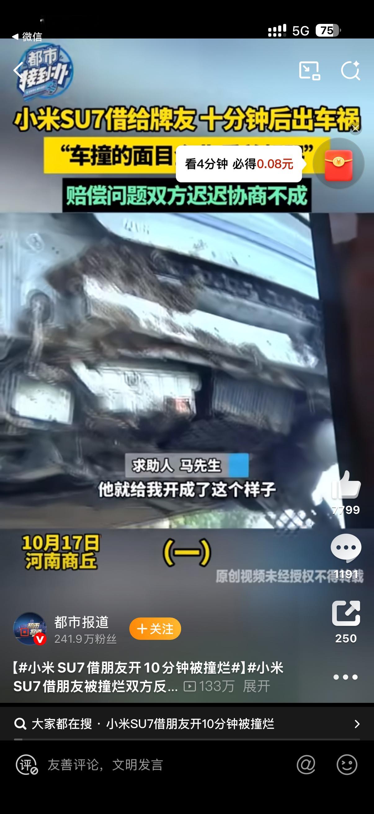 小米SU7借朋友开10分钟被撞烂早就说了,车与老婆不得外借,除非你不想要这台车了