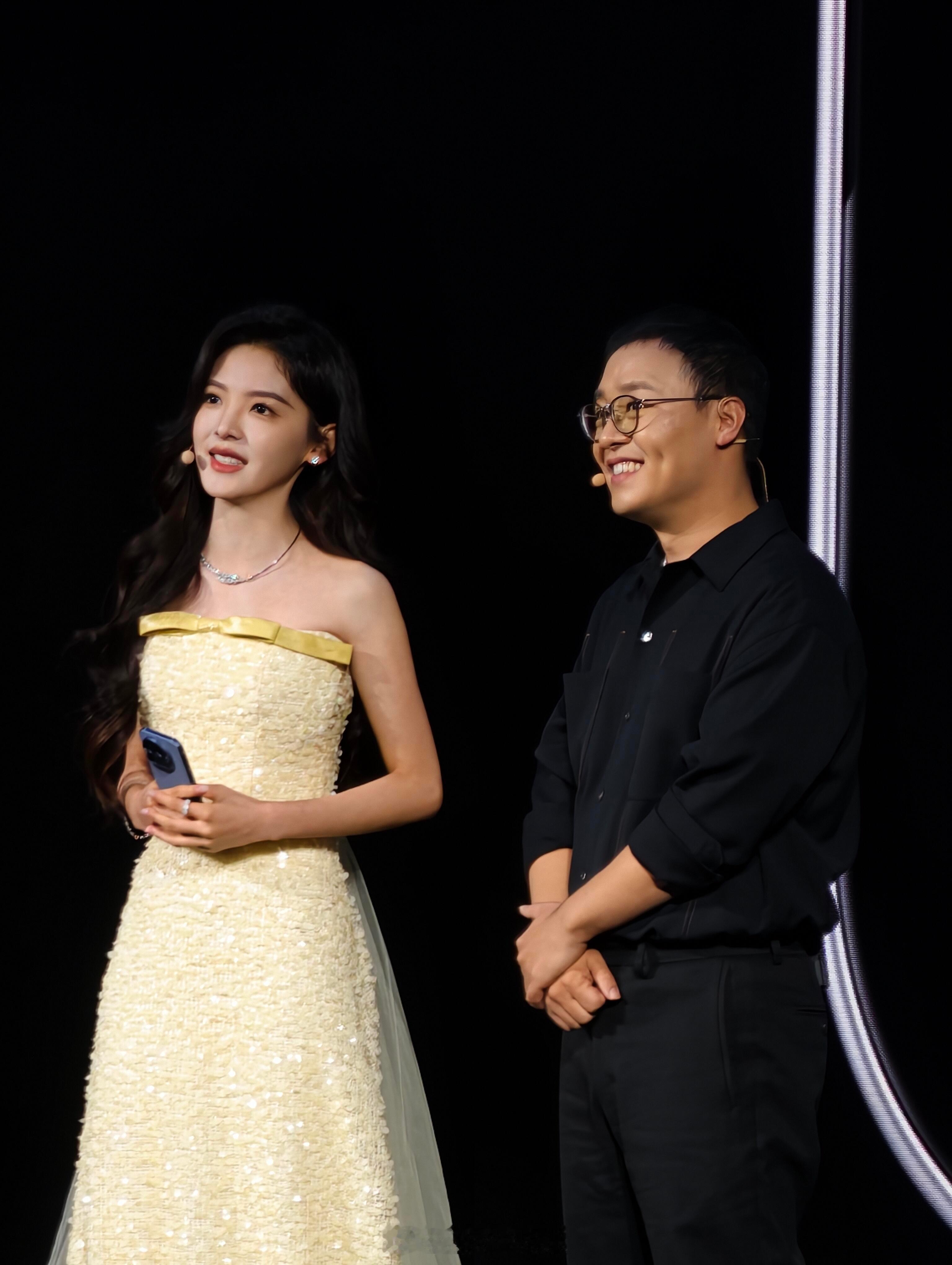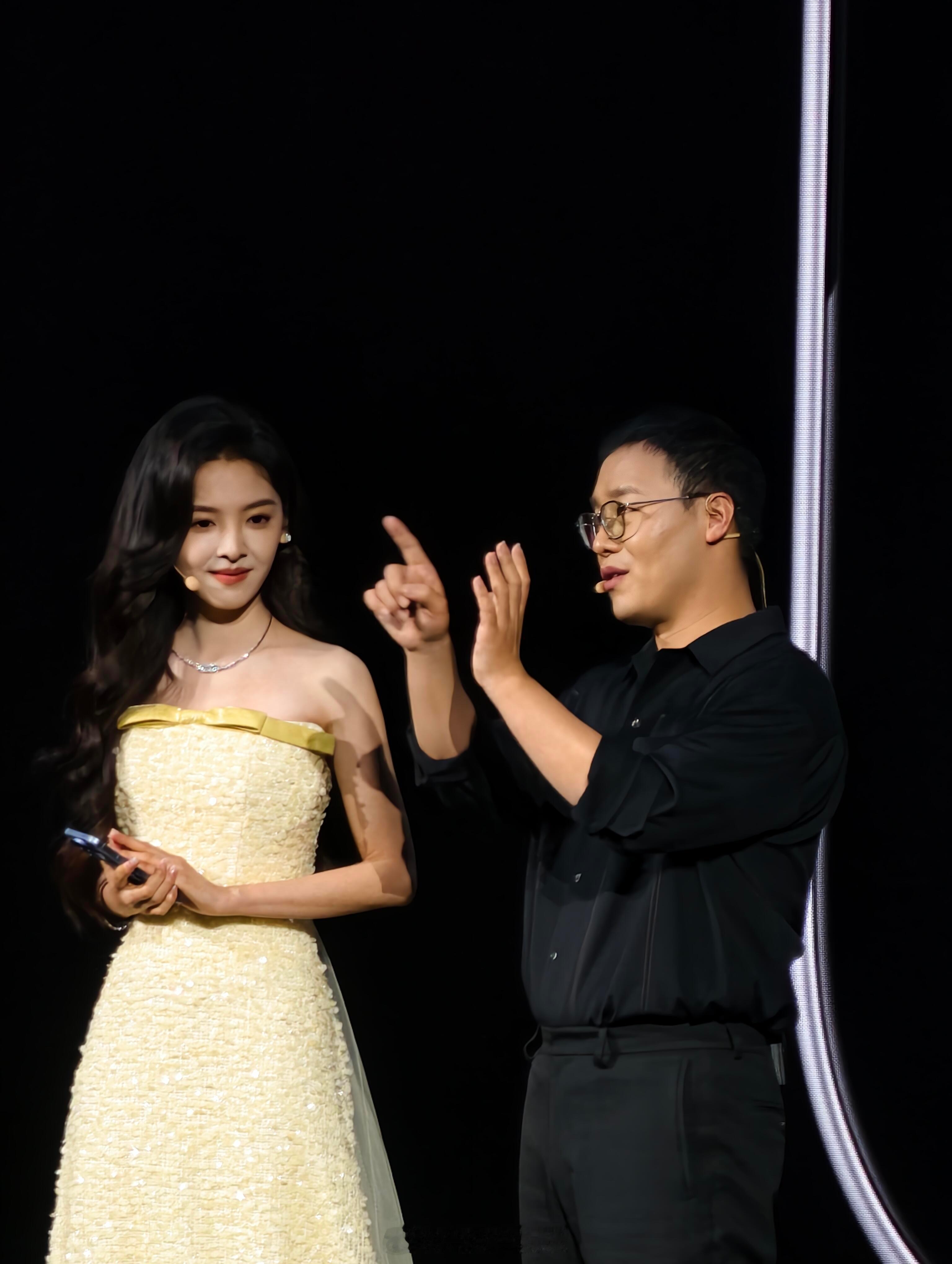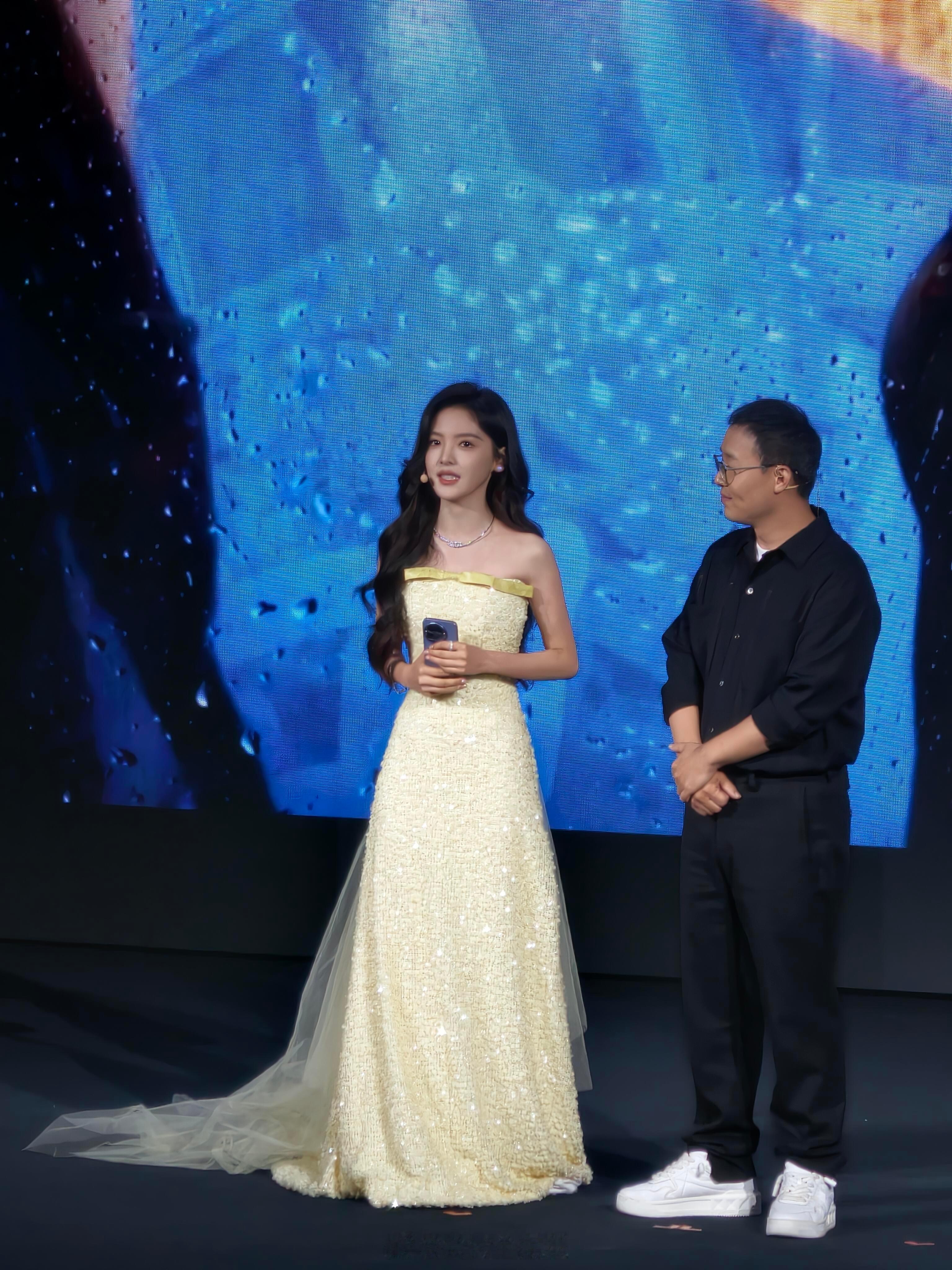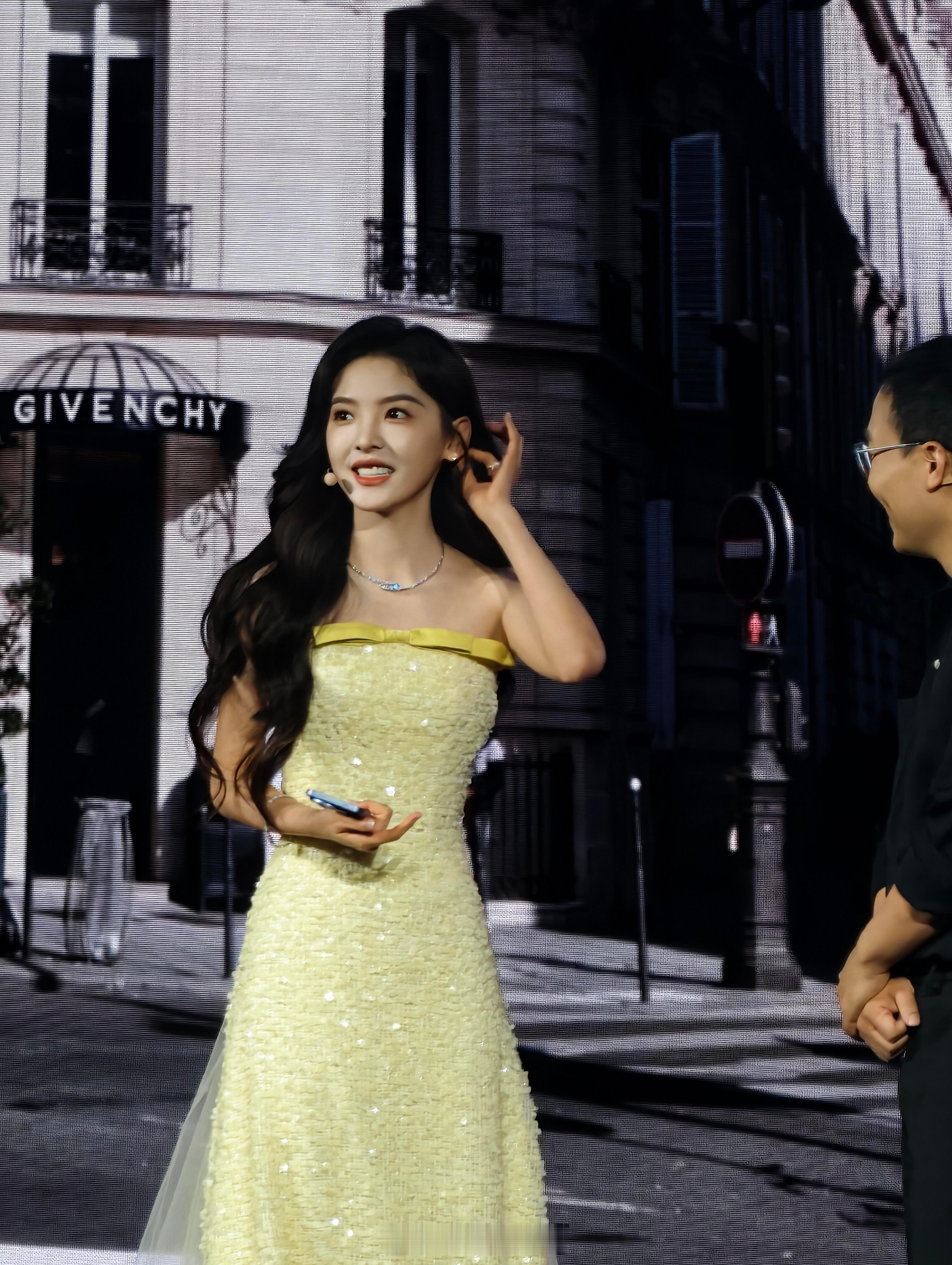 章若楠鹅黄色抹胸礼裙是美丽若楠