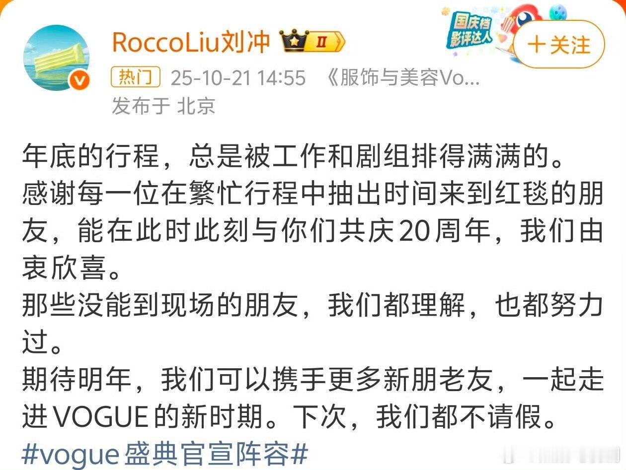 刘冲同时阴阳了来的和没来的还得是刘冲会阴阳,说那些没能到现场的朋友,我们都理解,也都努力过,明年我们不请假,网友锐评:来的没来的都被阴阳了