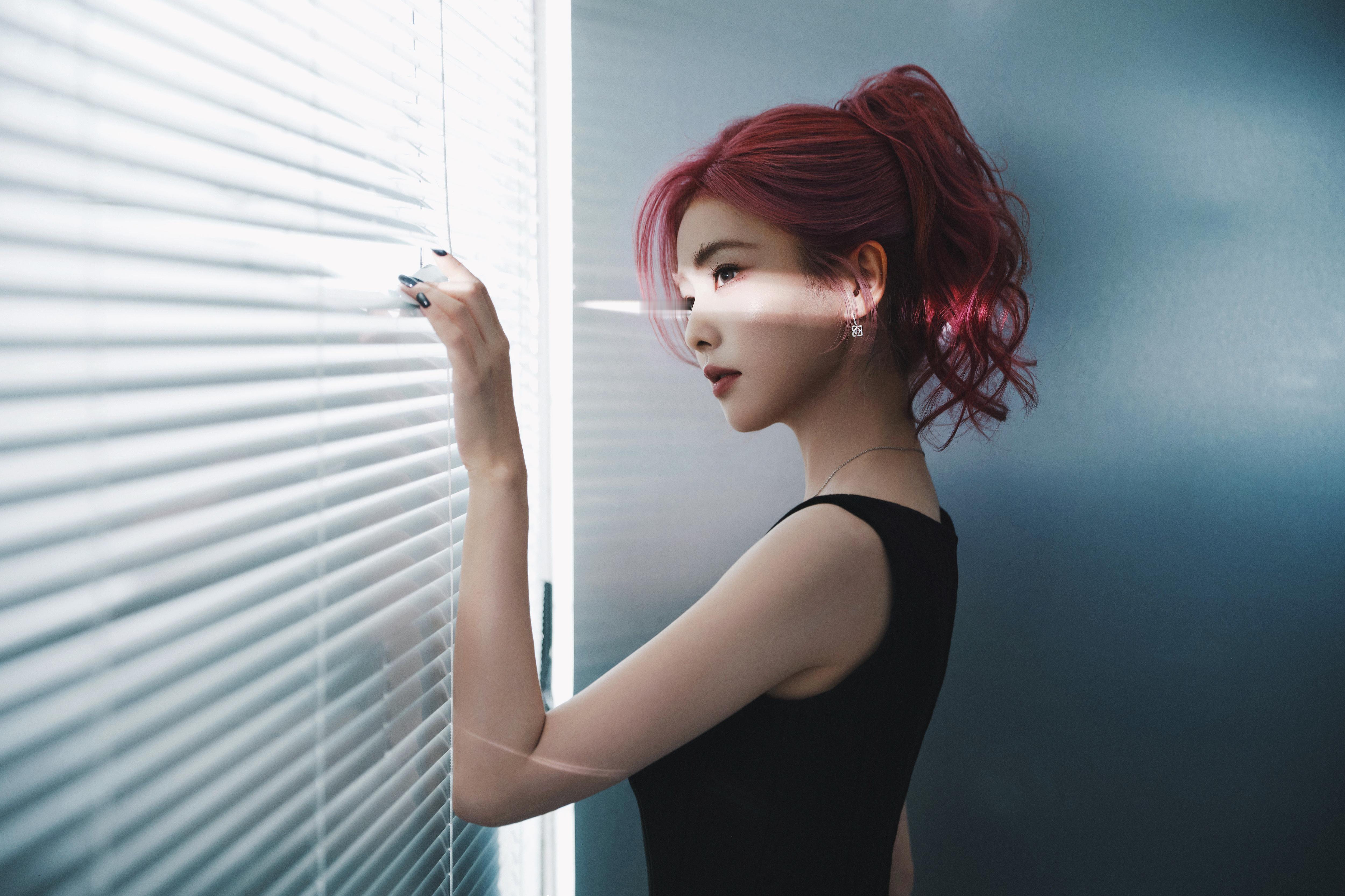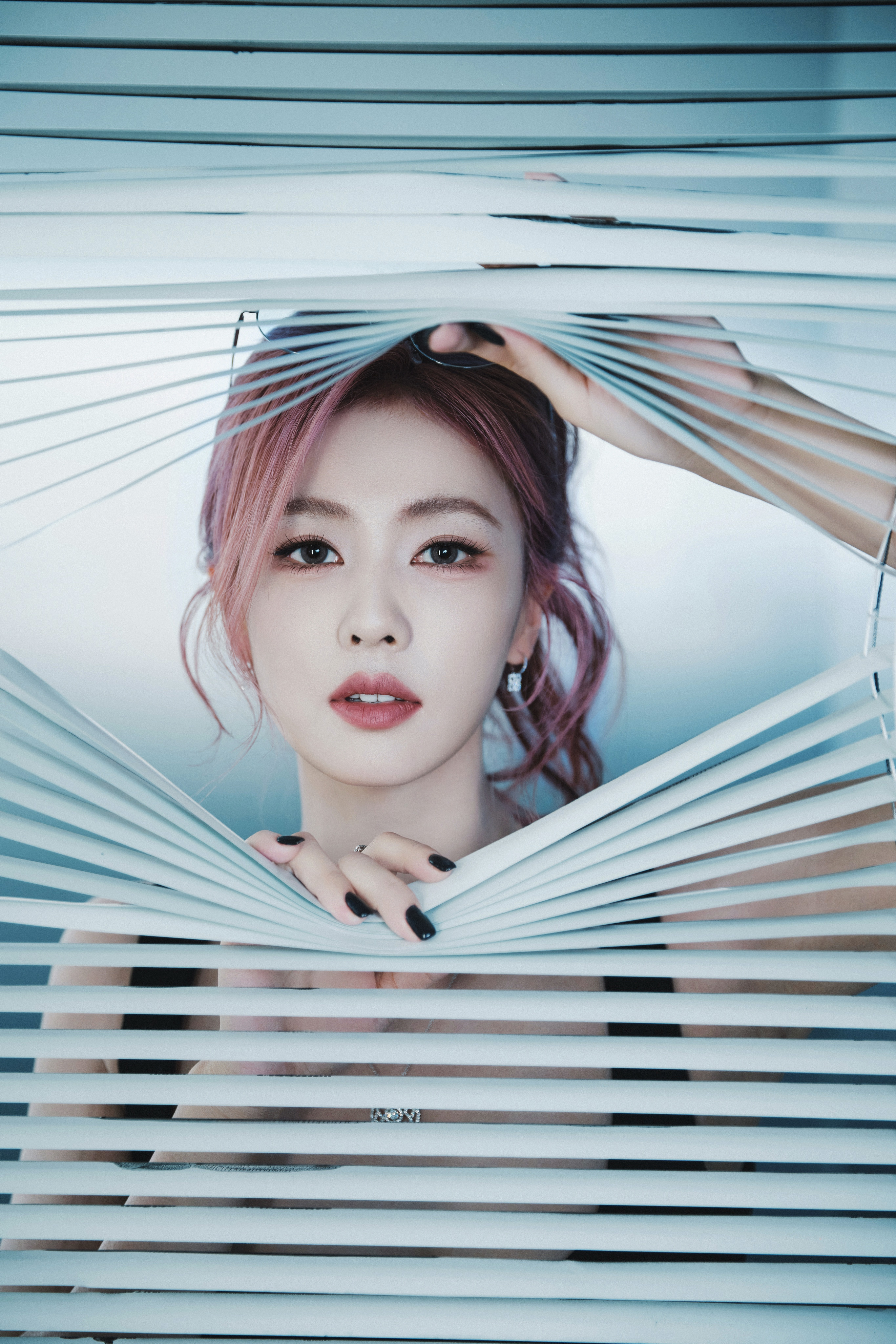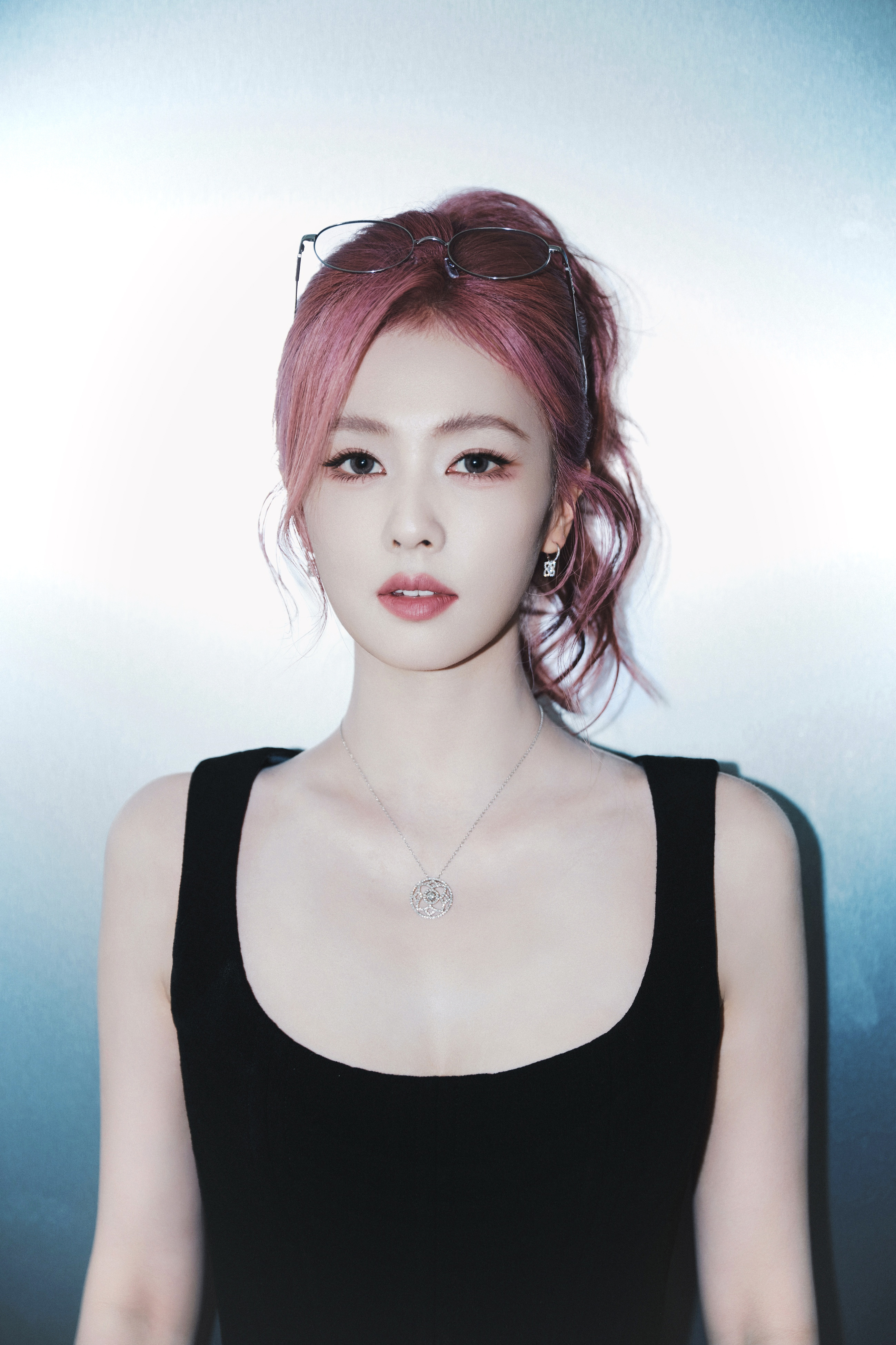白鹿一身黑裙勾勒出随性与精致的边界,粉发似揉碎的晚霞,在纯白空间里晕染出独属于