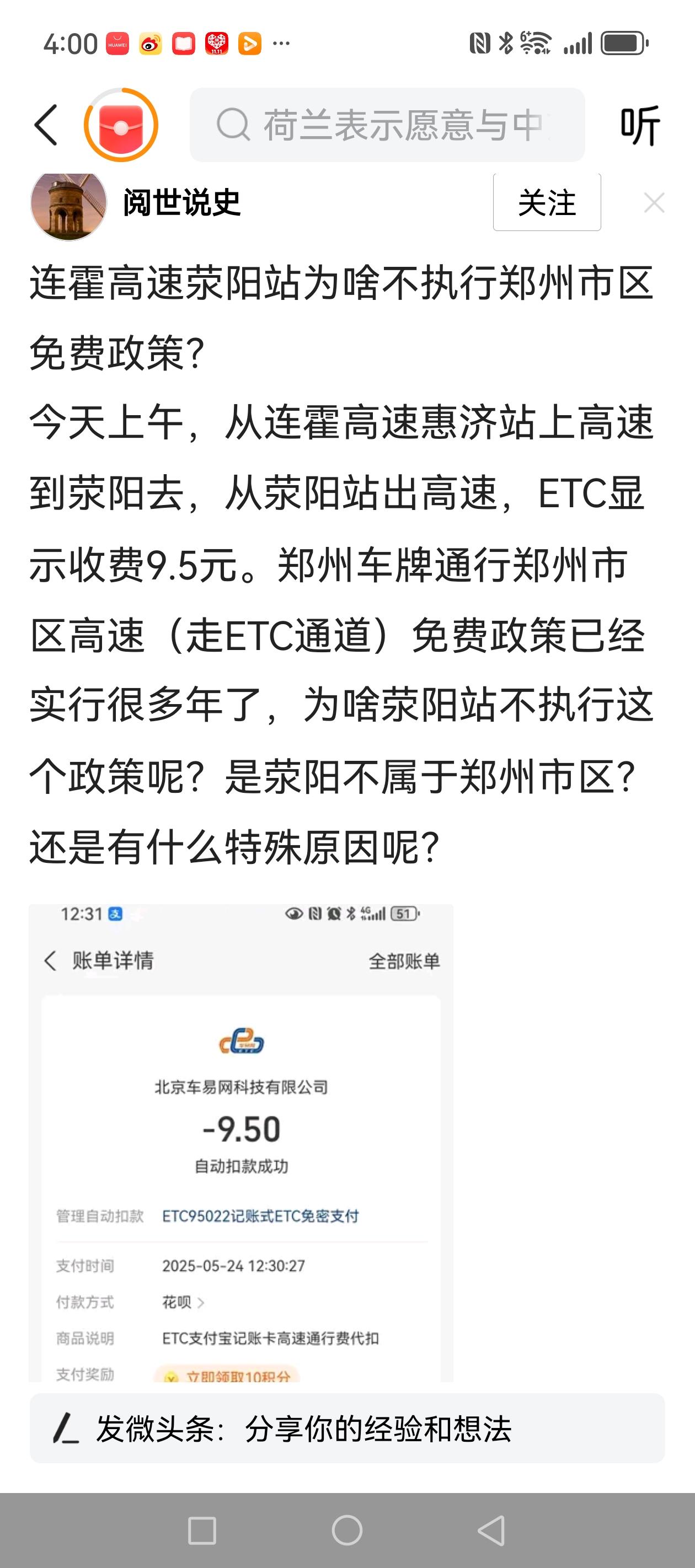 荥阳过境高速为什么不免费?主要是城北连霍高速和城东郑云高速(郑州绕城高速),借郑