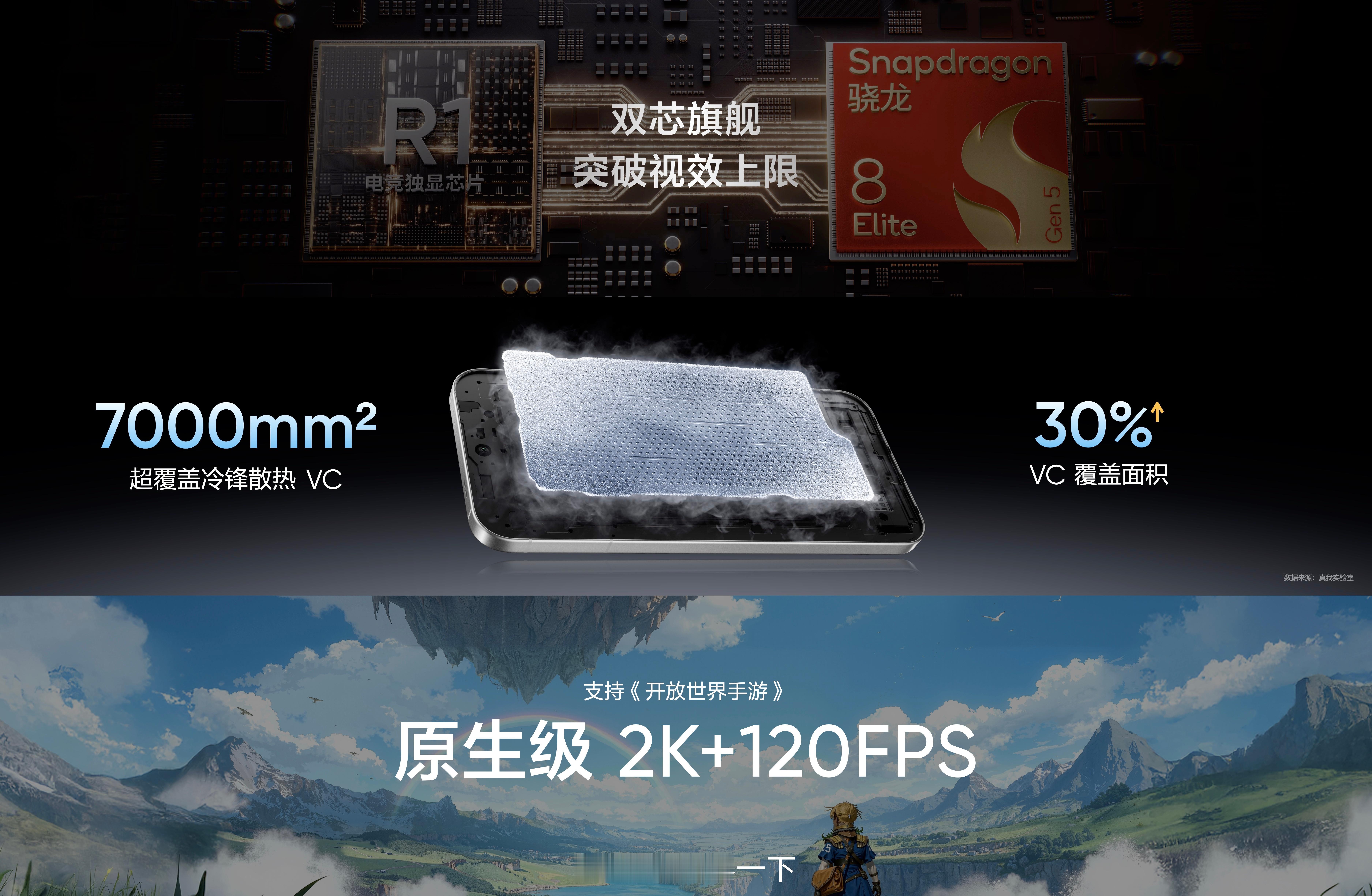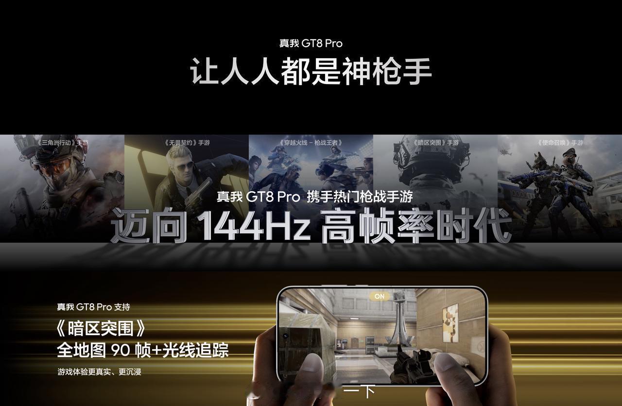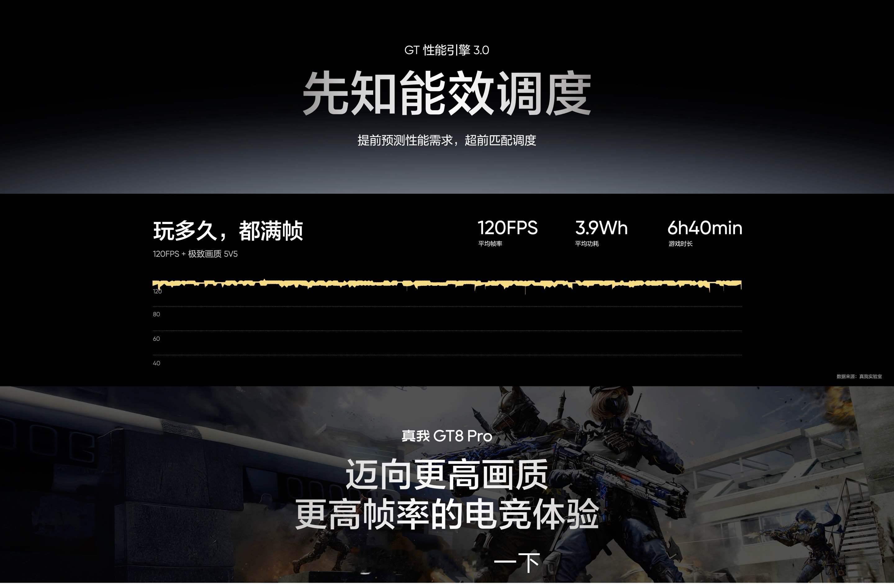 真我GT8系列搭载第五代骁龙8至尊版+电竞独显芯片R1旗舰双芯加持,画质与流畅度双越级