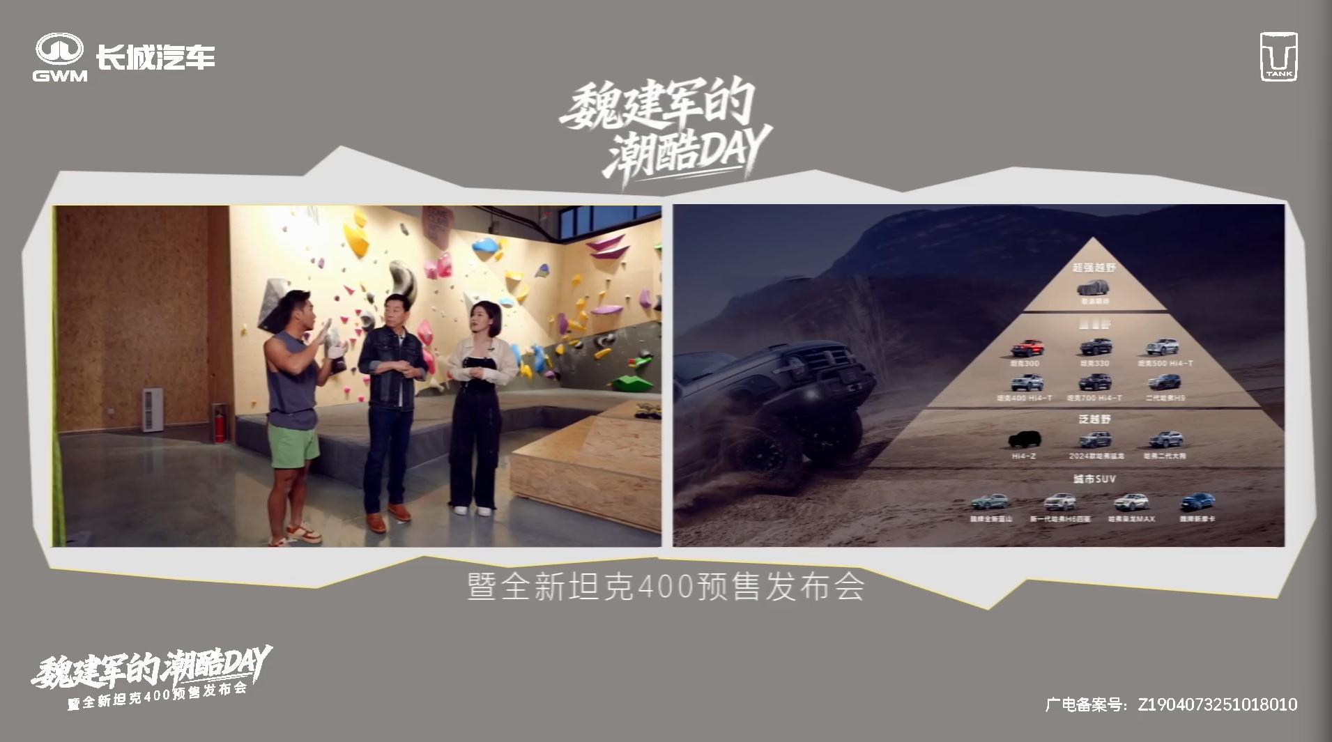 魏建军开启去爹味挑战 看魏建军和梦泪打王者、去攀岩,很快就能跟年轻人打成一片,没拿“过来人”身份压场。​不是刻意贴近,而是真把自己当参与者而非观察者,这种平等感比任何话术都实在。就像坦克400不玩传统越野套路,也是用“跟年轻人同频”的思路做设计,在城市中开着也很舒服。 ​​​