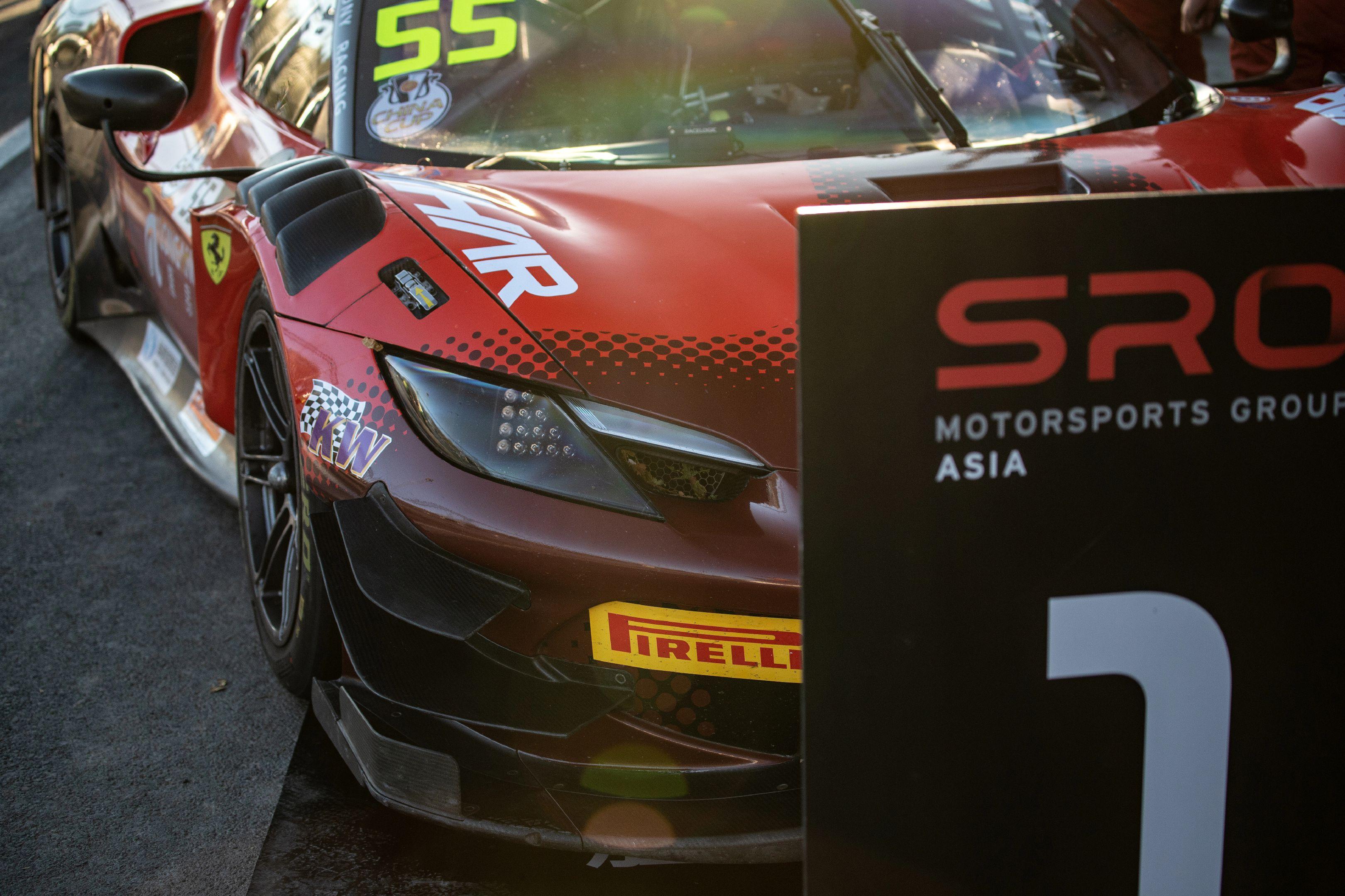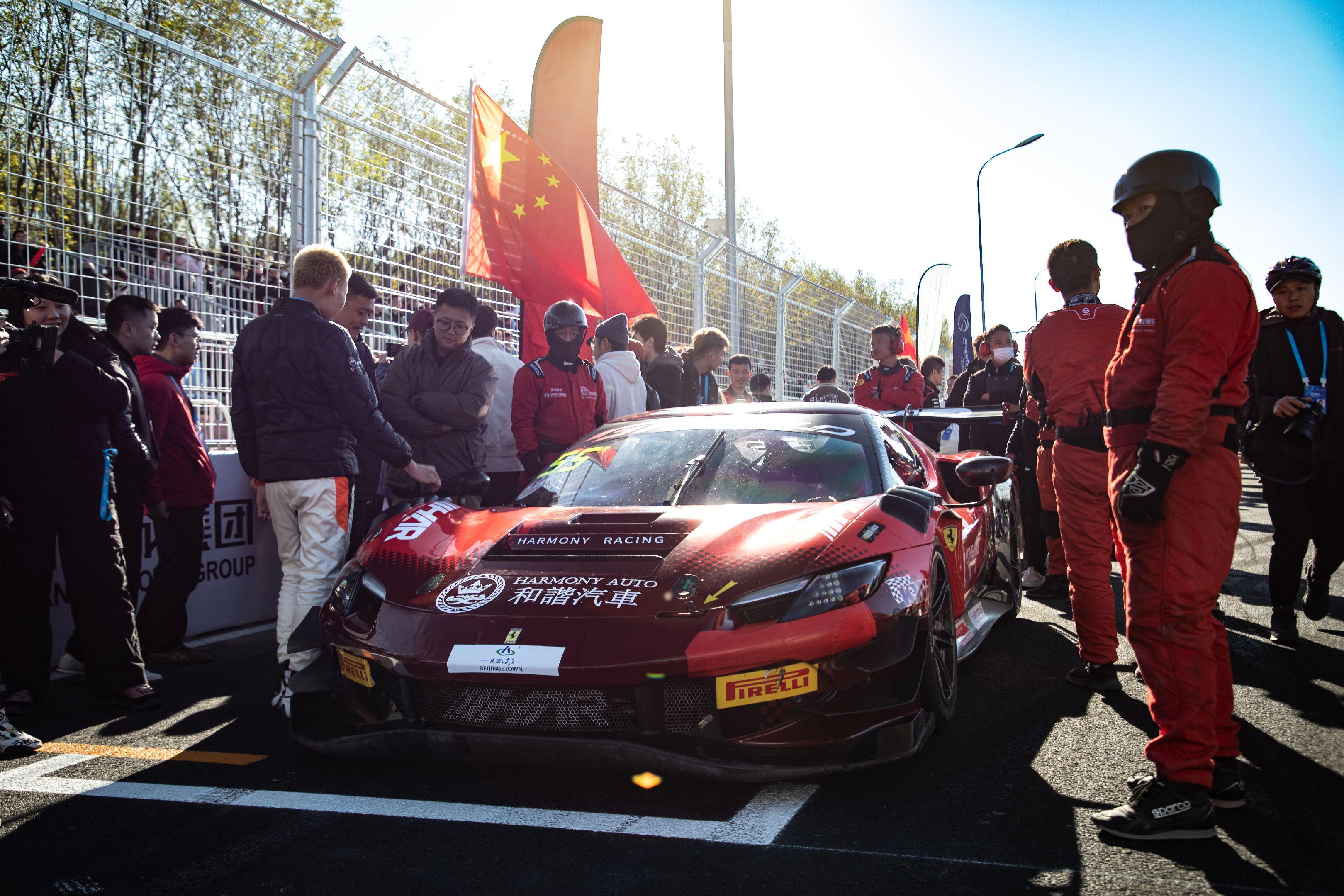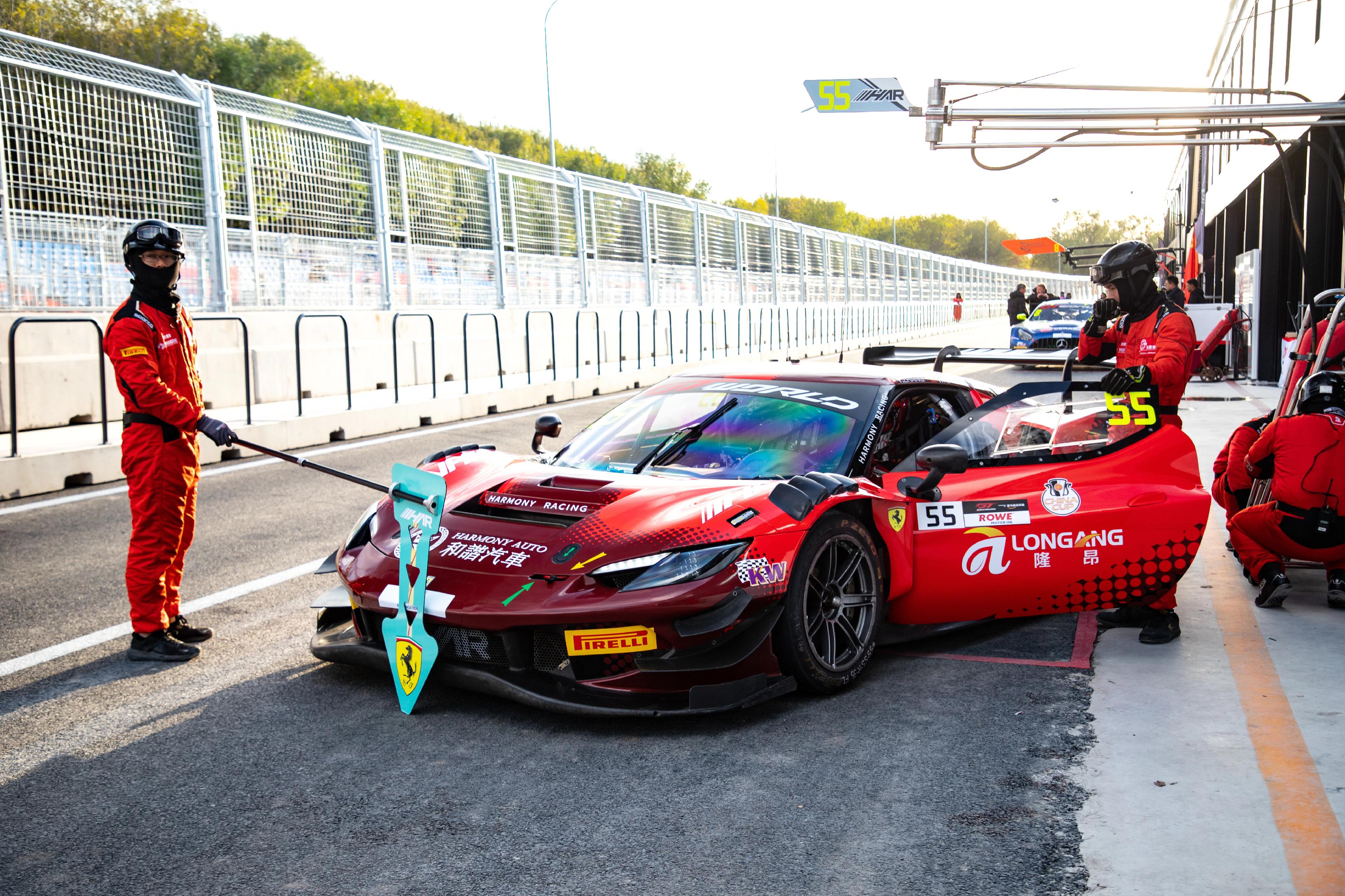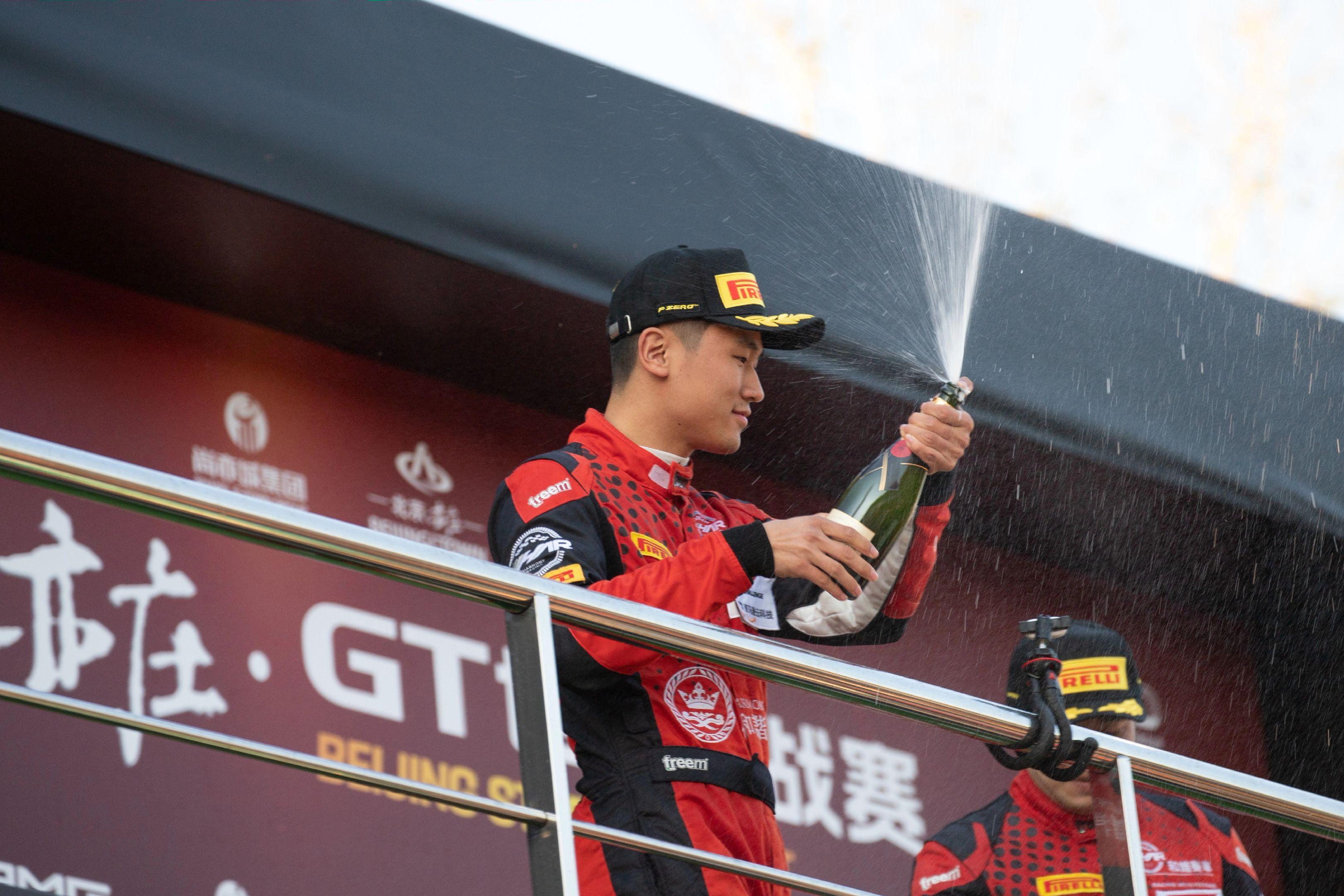 中国车手家门口夺冠。法拉利厂家车手叶一飞驾驶法拉利296GT3赛车在G...
