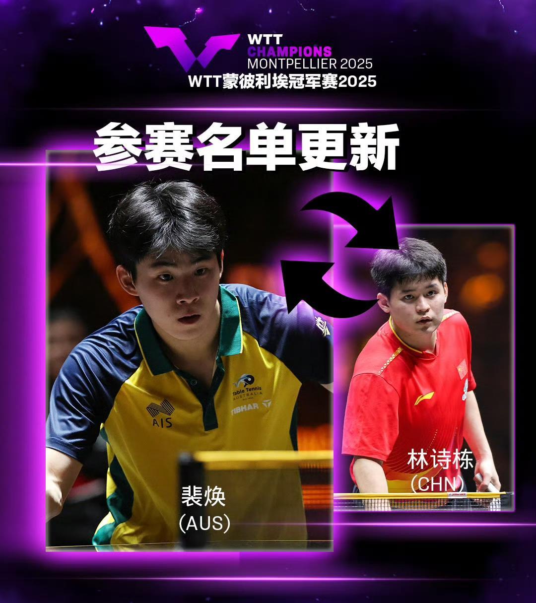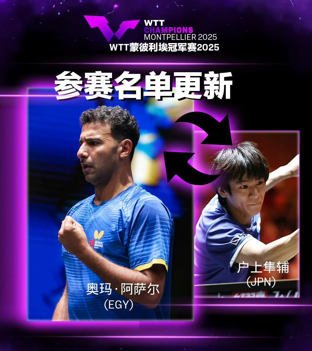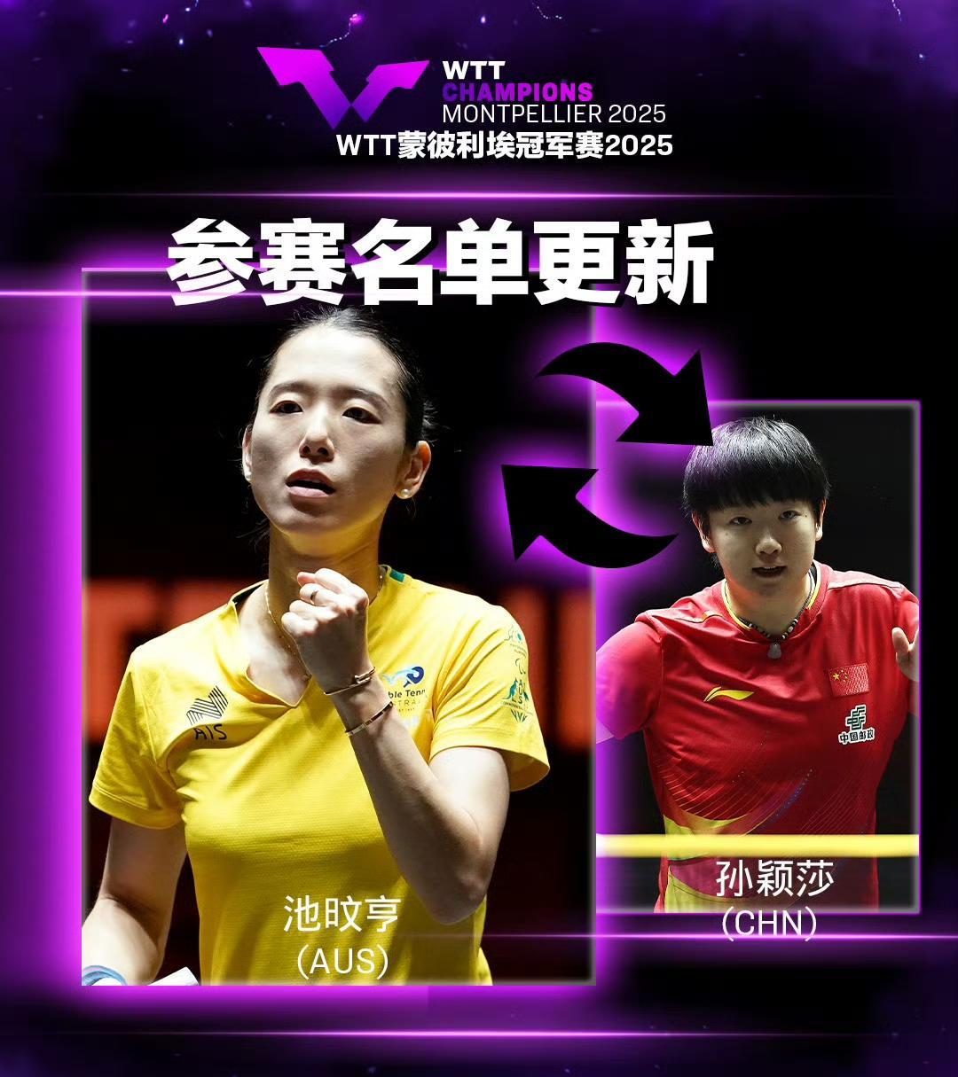 中国队五大主力全部退出WTT蒙彼利埃冠军赛! 中国队最终参赛名单: 男单:向鹏,陈垣宇,温瑞博 女单:陈幸同,蒯曼,王艺迪,陈熠 中国队五大主力退赛后只派出温瑞博递补,其他递补名额由外协队员补上。 到目前为止,王楚钦,林诗栋,梁靖崑,孙颖莎和王曼昱他们五人已退出今年仁川和蒙彼利埃两站冠军赛了,按WTT规则,运动员是有权选择性退出两站冠军赛的(不罚款不赋零分),但下一站法兰克福冠军赛时间跟全运会有冲突,中国队运动员也是没办法参加的(WTT法兰克福冠军赛11月4日至9日举行)。 运动员连轴转太辛苦了,支持他们退赛。全运会乒乓球项目将在11月7日开赛,他们也该各自回省队备战了。