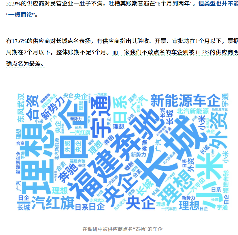 据悉,有17.6%的供应商对长城点名表扬;17.6%供应商点名表扬理想。