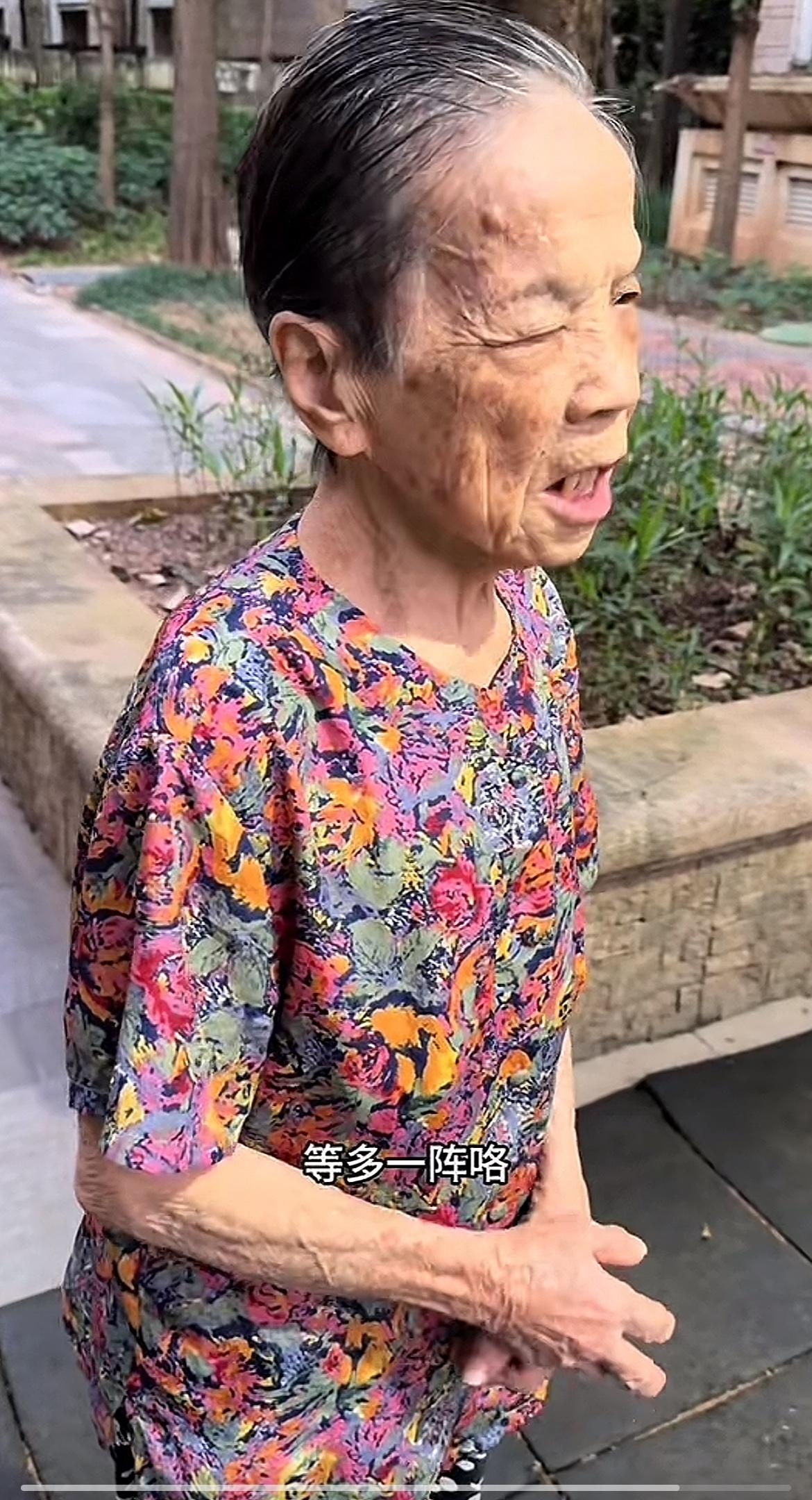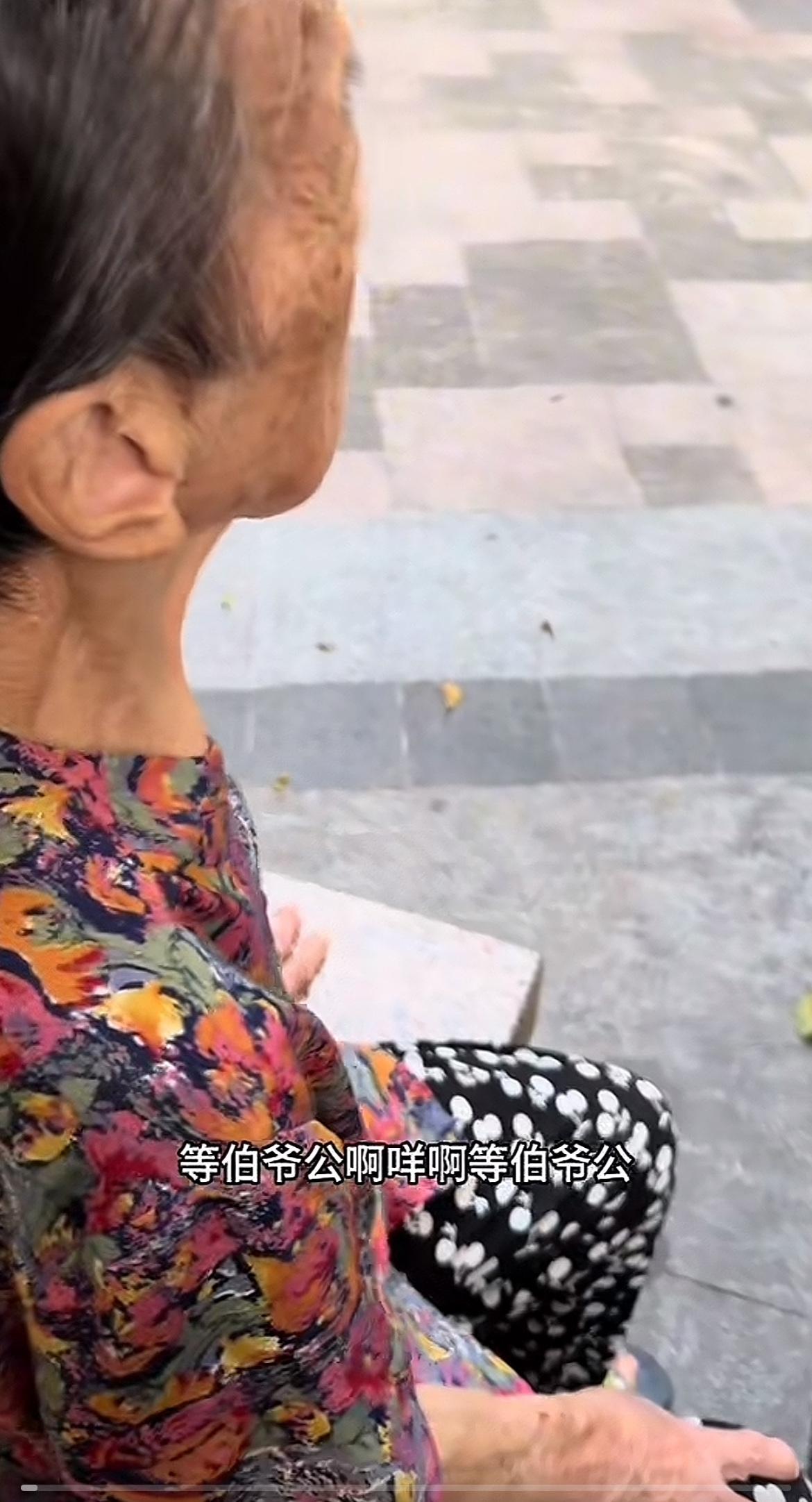 真的泪目了 广东一个90的老婆婆坐在小区路口的花坛上。 他儿子走来找她问:“妈你
