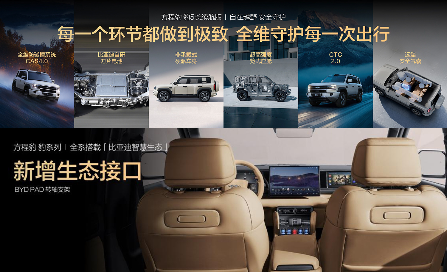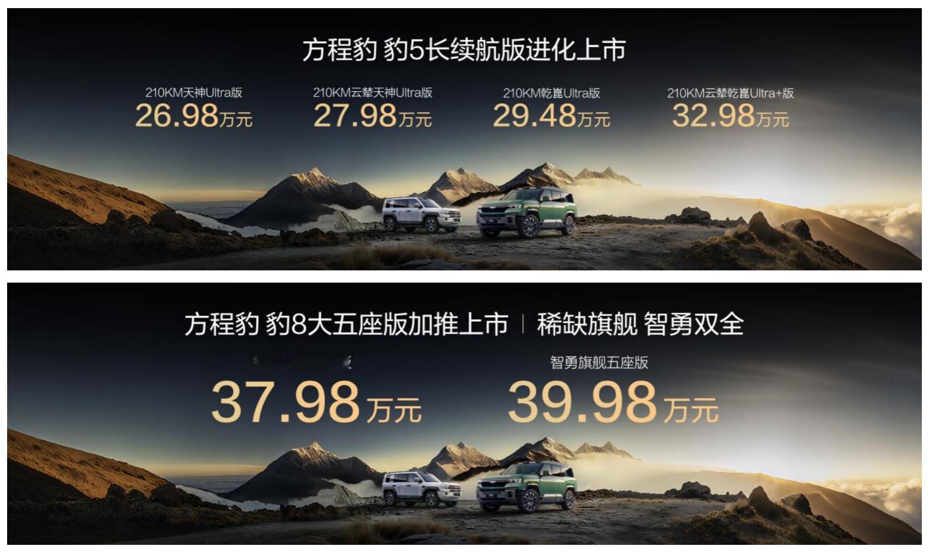 10月20日,方程豹推出两款秋季新品:豹5长续航版和豹8大五座版。以硬核科技打造越野新标杆,“人人可野・拥豹新生活”的主张,为用户再添硬核新选择。