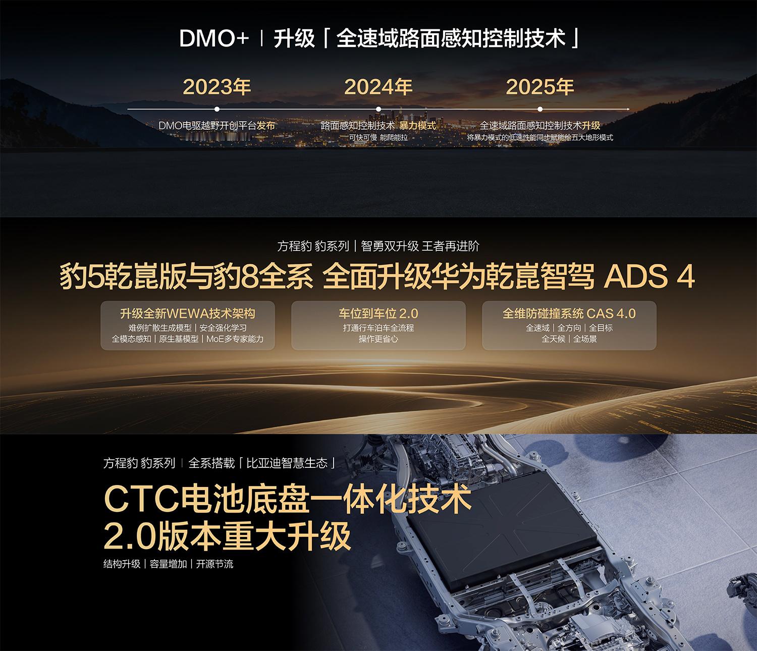 搭载 DMO+平台,首发 “全速域路面感知控制技术”,老用户也可 OTA 升级,降低越野门槛;