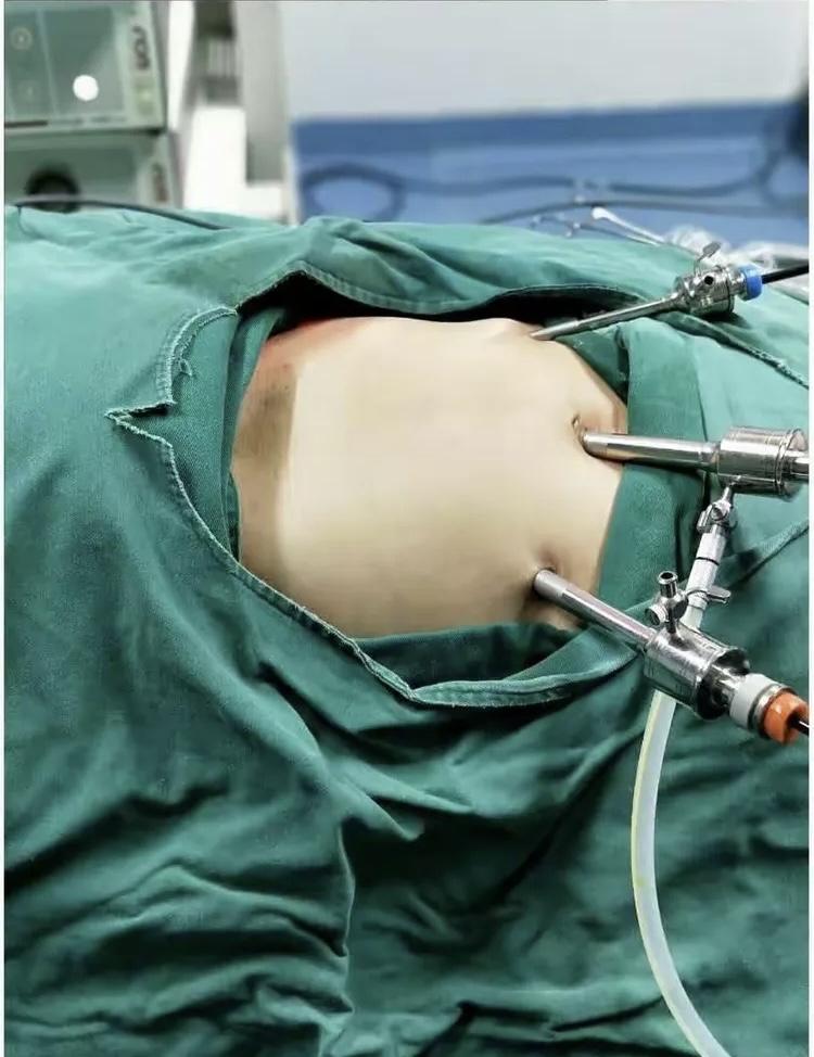 今天四台疝气手术,有一个患者是2011年外院做的右侧传统开刀手术,现在复发了,同时左侧也有新发的腹股沟疝,正好做腹腔镜微创手术,肚子上打三个小眼儿,就能解决双侧腹股沟疝