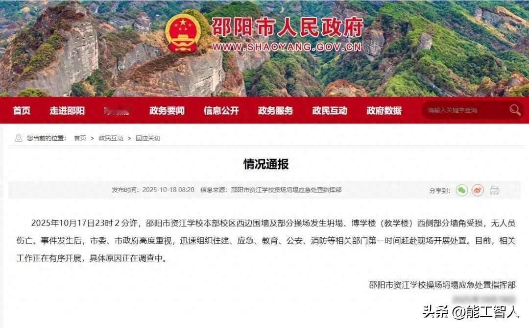 操场塌了,资质刚补上,谁在装睡? 10月17号夜里,湖南邵阳资江学校的操场突然塌了一半,连教学楼的墙都裂了缝,好在没在上课,没人受伤,第二天凌晨,政府说学生从20号开始去别的学校上课,这学校有三千六百多个孩子,操场才花了一百多万,四个月就建好了。 这个工程是2021年8月开工的,11月就干完了,合同价一百一十五万,最后付了一百二十四万,承建公司叫邵阳宝华工程公司,2016年成立的,注册资本一千零八十万,最奇怪的是,这家公司直到2025年8月才拿到市政二级资质,也就是施工前两个月才拿到,那2021年干活的时候它有没有资质,谁让它干的,验收又是谁签的字。 操场塌了,多半是地基没打实,排水没做好,填土也不够扎实,这操场才四千七百多平米,预算低得可怜,是不是为了省那点钱,材料就随便凑合了,验收的时候,住建局、教育局、财政局的人真去看了吗,还是只是走个形式,这种小项目往往不招标,监管根本没跟上,江西去年就有小学跑道开裂,用的是再生胶颗粒,出了事才被翻出来处理。 这家公司2025年8月才拿到资质,2021年施工的时候按规矩根本不能接这种活,可它干了,还过了验收,是不是挂靠了别的公司,是不是有人装没看见,2024年国家查过挂靠和围标,地方真查了还是装不知道,现在补发资质,是不是出事了才补票。 家长看到消息就急了,教育局只说正在处理,没公布检测报告,也没说谁管这事,微信群里都在传操场安全自查清单,可官方没给统一标准,2025年国家要出新的校园体育设施标准,可现在地方早就乱了。 操场塌了,事儿没那么简单,资质是假的,验收就是走过场,钱一压再压,监管压根没动过真格,这些才更该让人担心。
