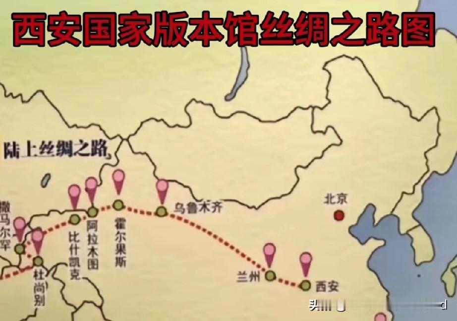 国博馆丝绸之路示意图, 为什么不连接洛阳? 很简单, 如果连接洛阳(图3洛阳博物馆), 那么,你告诉我, 丝绸之路的起点是哪里? 显然就是洛阳。 那么, 比洛阳更早的西汉丝绸之路在哪里? 所以, 丝绸之路只有从西汉的长安出发, 才能表达出真实的丝绸之路起点。 否则, 像洛阳博物馆的图示表达, 今天连到了北京, 韩国人连到了首尔。 你说丝绸之路的起点在哪里? 丝绸之路具有一定的历史时空, 从开始到终结的期间。 它始于西汉,终于唐末。 而起始和终止,都是在长安。 最具权威的莫过于西安国家版本馆, 洛阳博物馆的丝绸之路示意图, 是把长安连到洛阳, 然后在丝绸之路简介中说明, 洛阳是东汉时期丝绸之路的起点。 这也没毛病, 毕竟当地博物馆要服务当地。 洛阳博物馆也要尽力的宣传自己。 总之,丝绸之路的起点没有可争性, 历史教科书就是手把手的老师。 任何专家学者或者投机取巧者, 都是无法改变丝绸之路起点长安的事实
