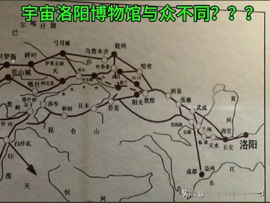 国博馆丝绸之路示意图, 为什么不连接洛阳? 很简单, 如果连接洛阳(图3洛阳博物