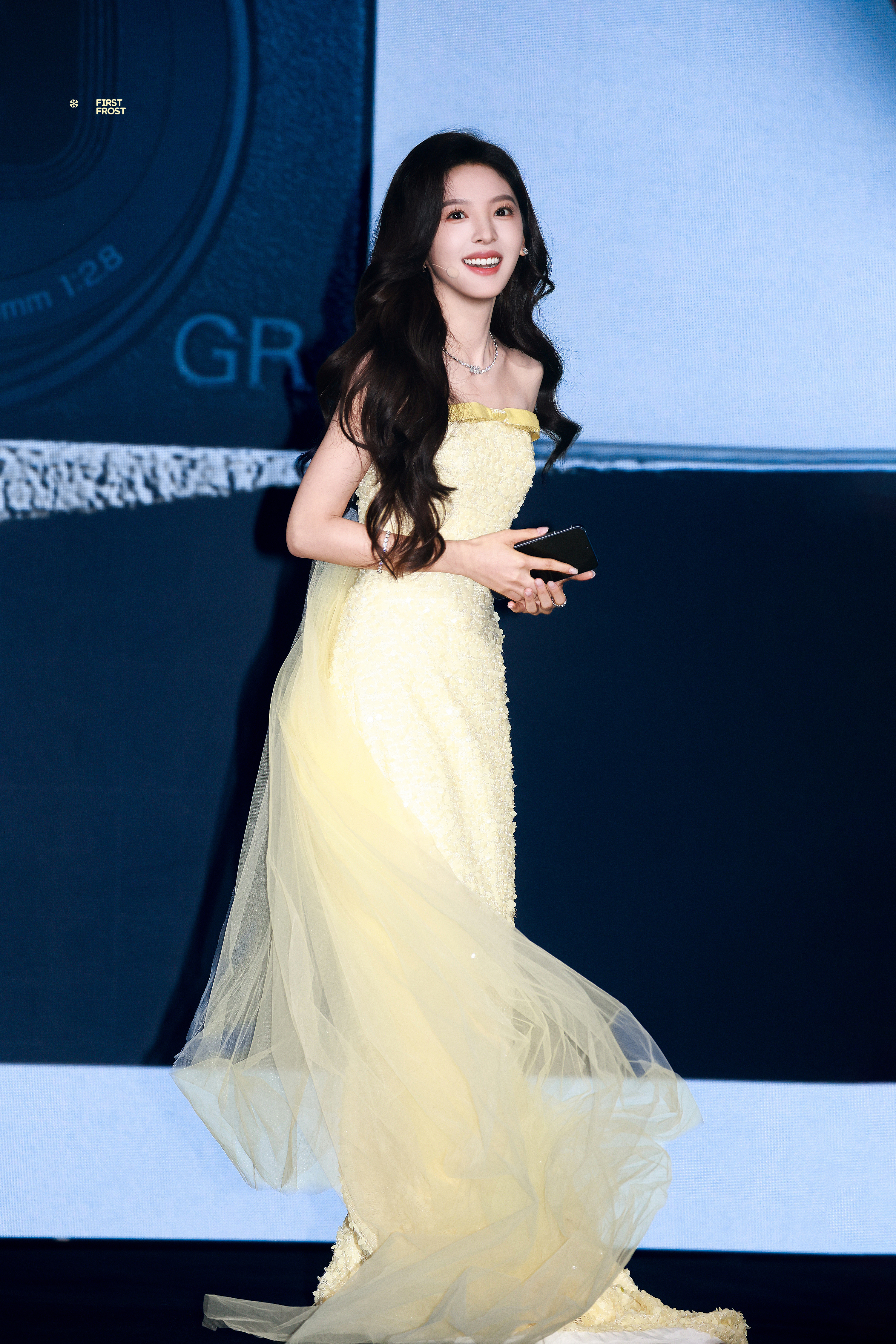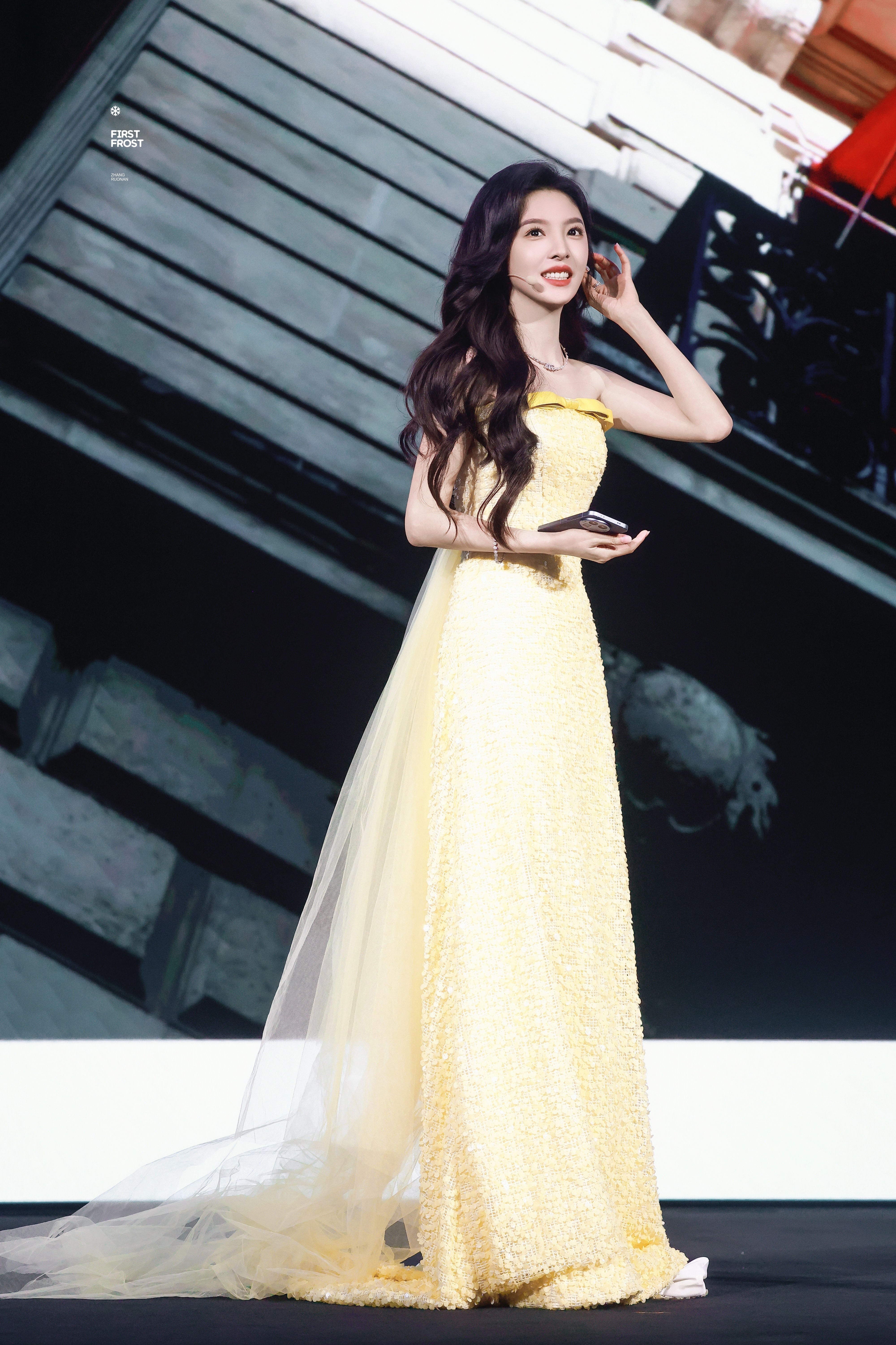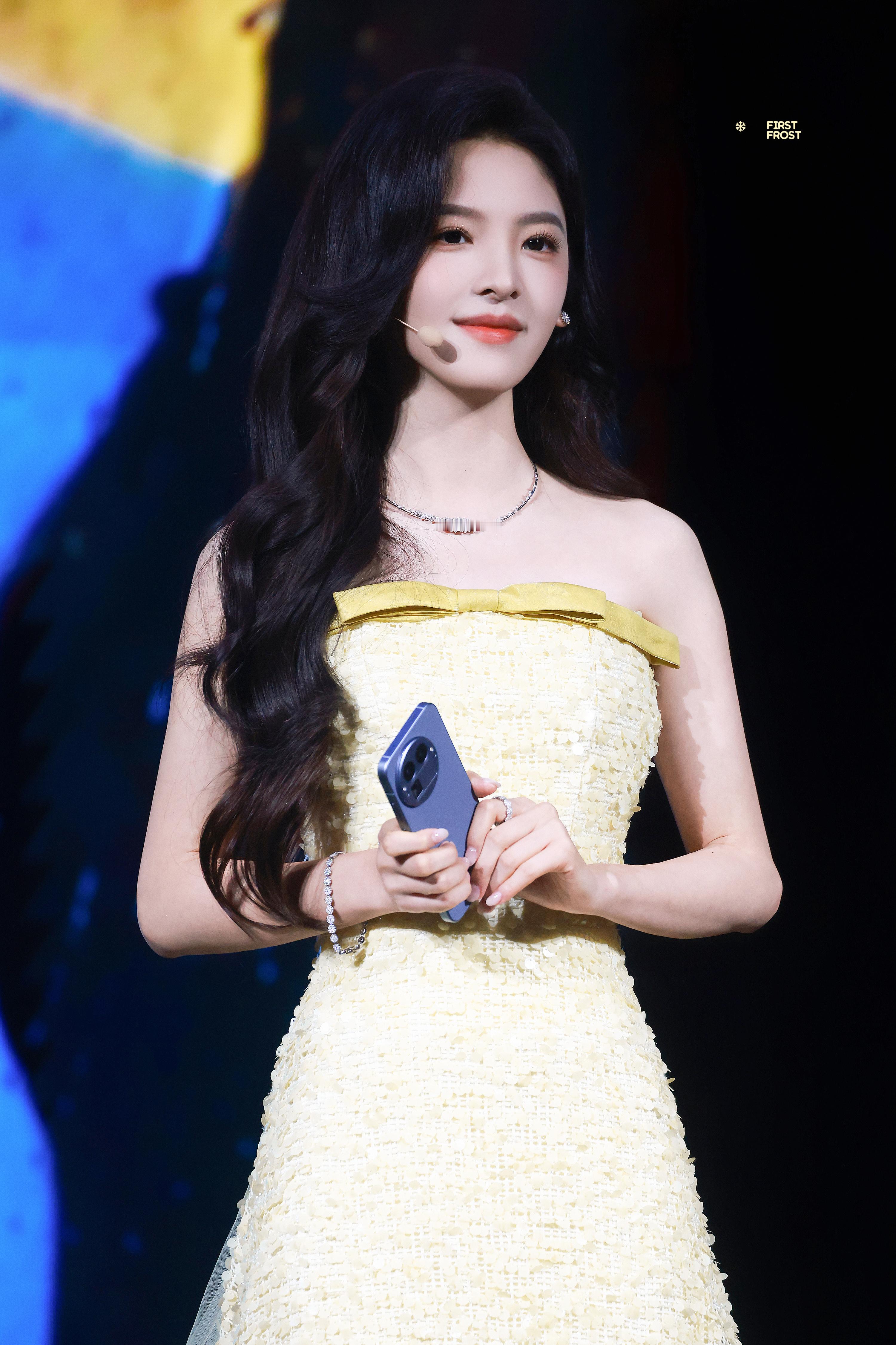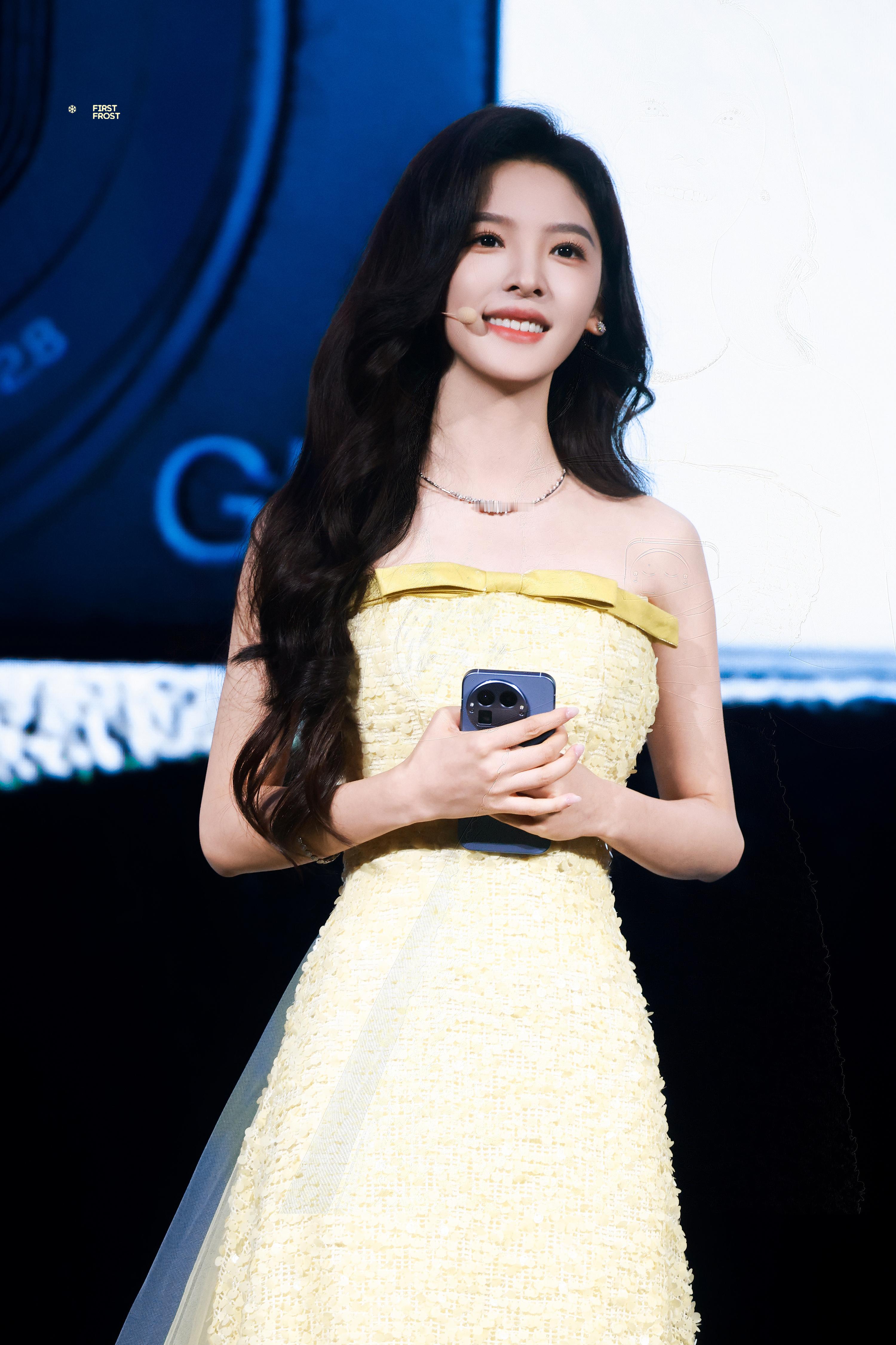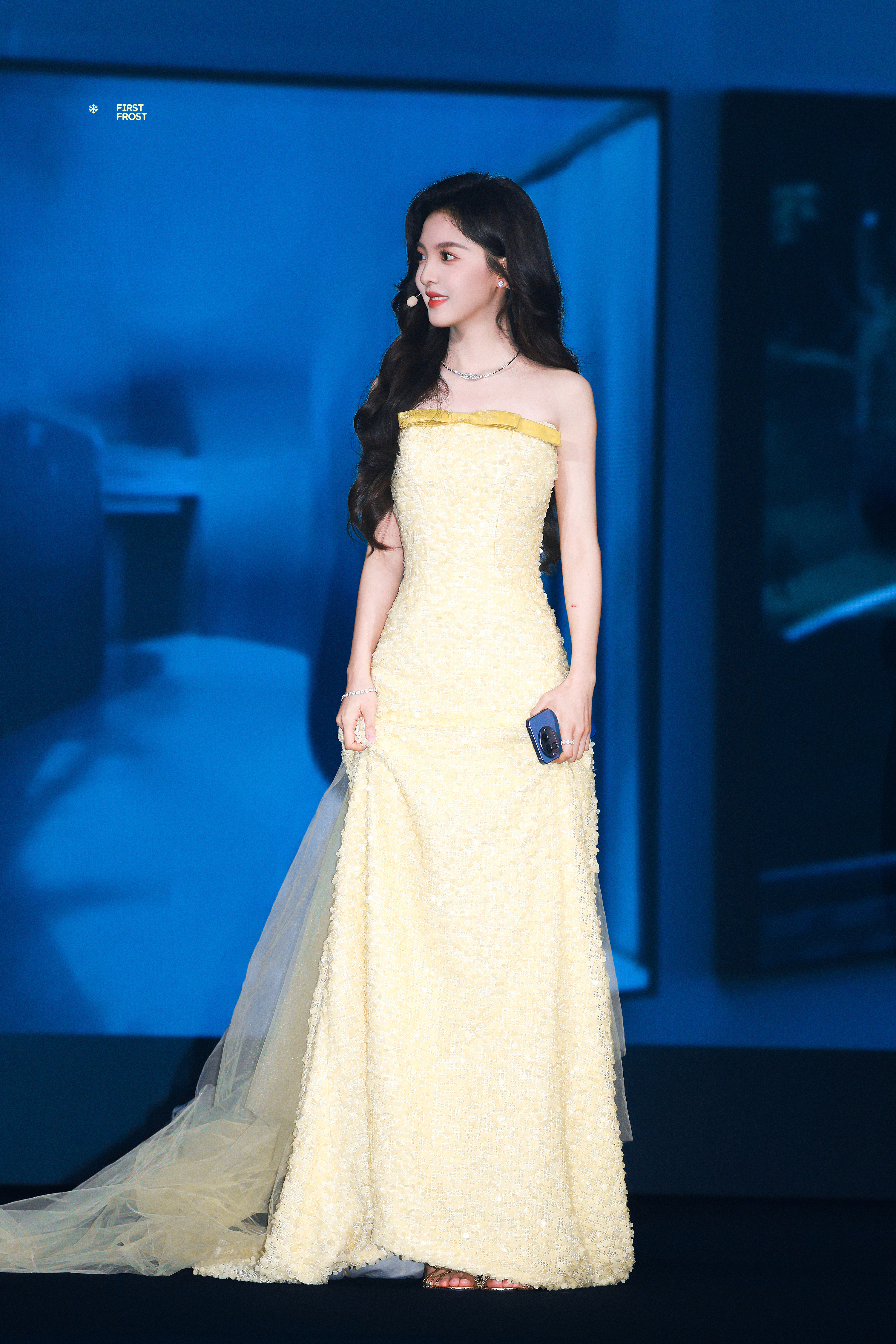 章若楠 鹅黄色礼裙裹挟着轻纱的温柔,将灵动与优雅揉进每一个姿态。章若楠鹅黄色抹胸礼裙