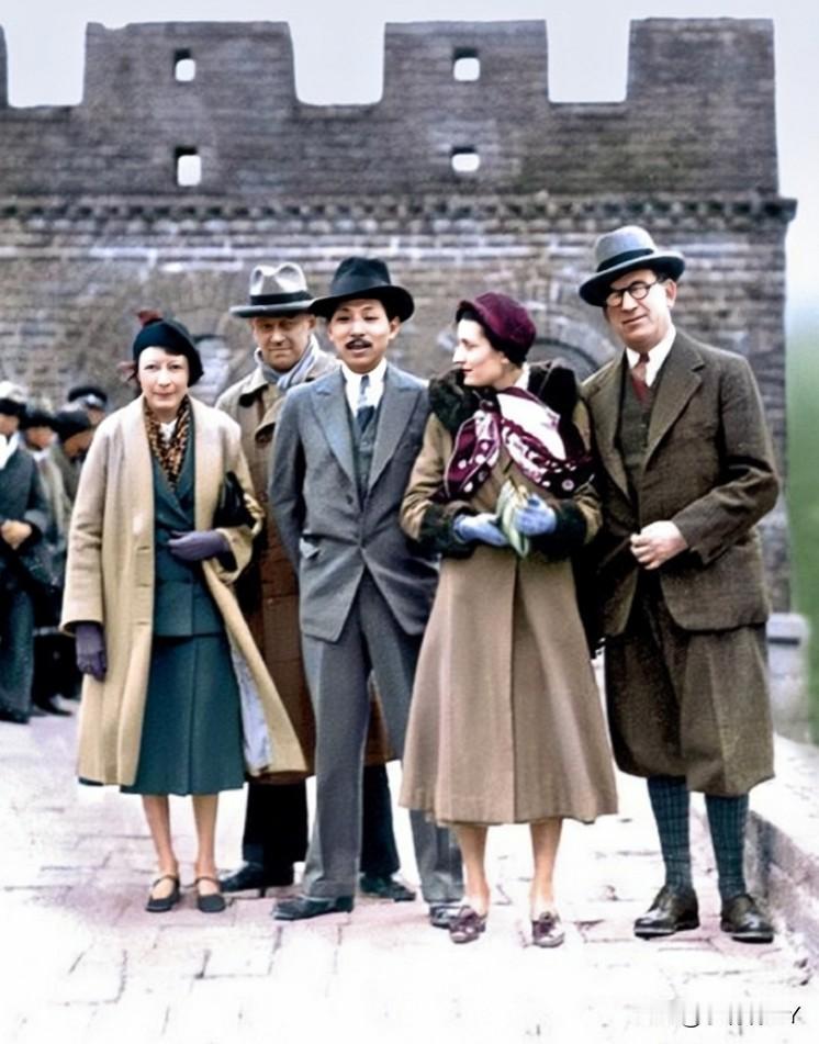 这张照片展现出了1930年29岁张学良和墨索里尼的女儿埃达一同游览长城时的情景,这可不是演员扮演的,而是他当时的真实样貌。彼时是他的人生巅峰,民国陆海空军副司令,地位仅次于老蒋。