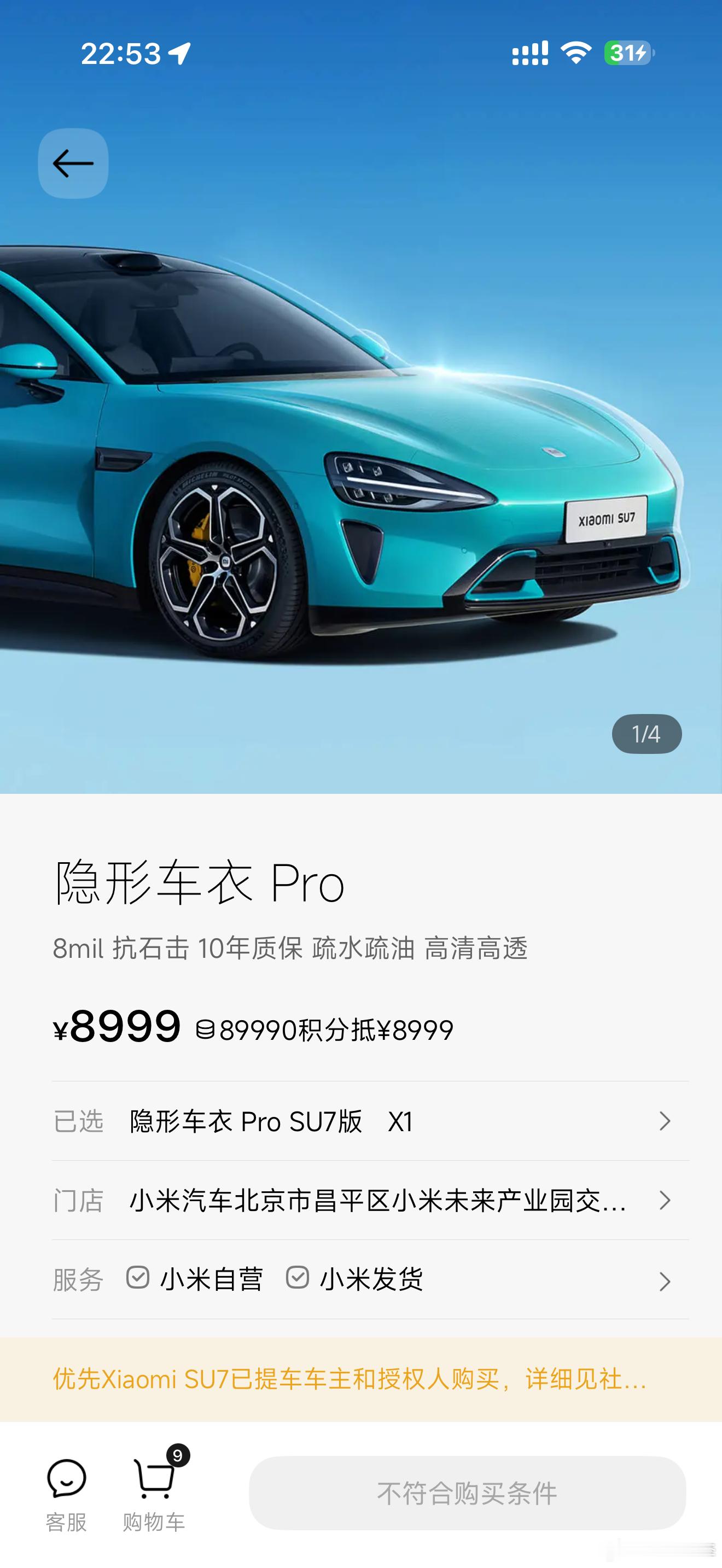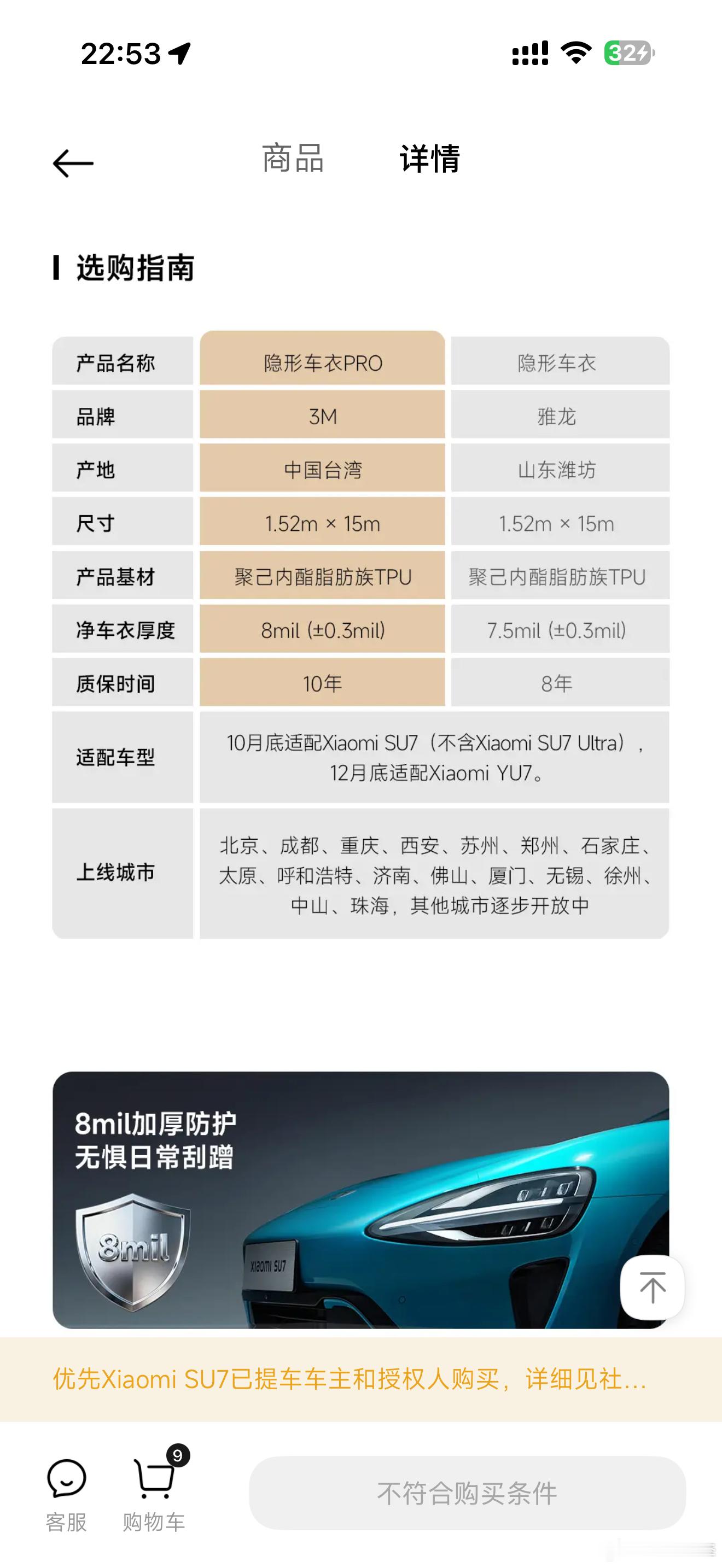 小米出官方隐形车衣了!对于小米二三十万的均价车价来说,8999不算便宜。你要说花五六十万去买小米的人可能不在乎,但是我们ultra又不支持贴,还是说ultra贴起来太麻烦?3799这个日常用用也够了,主要是进口和国产材质还有厚度的区别,有没有懂车衣的朋友讲讲[doge]