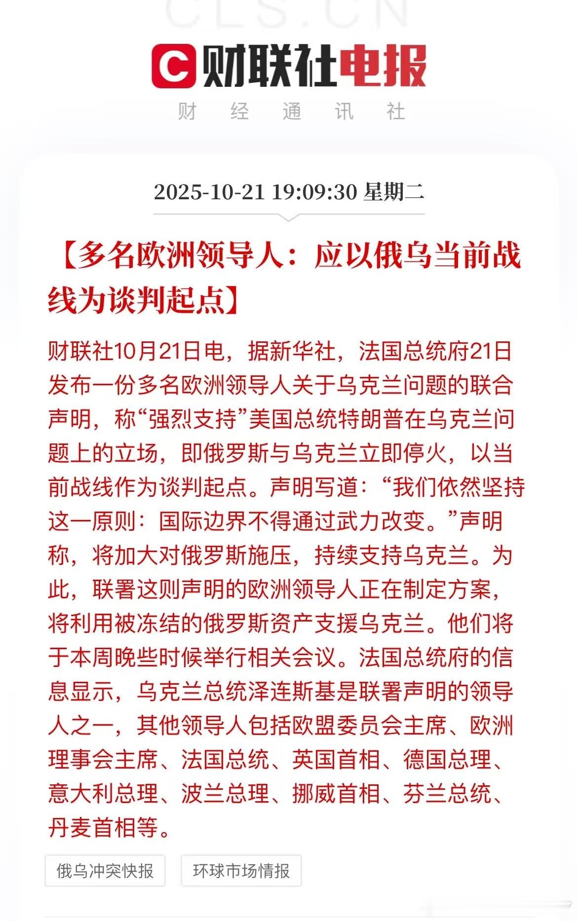 多名欧洲领导人:应以俄乌当前战线为谈判起点。