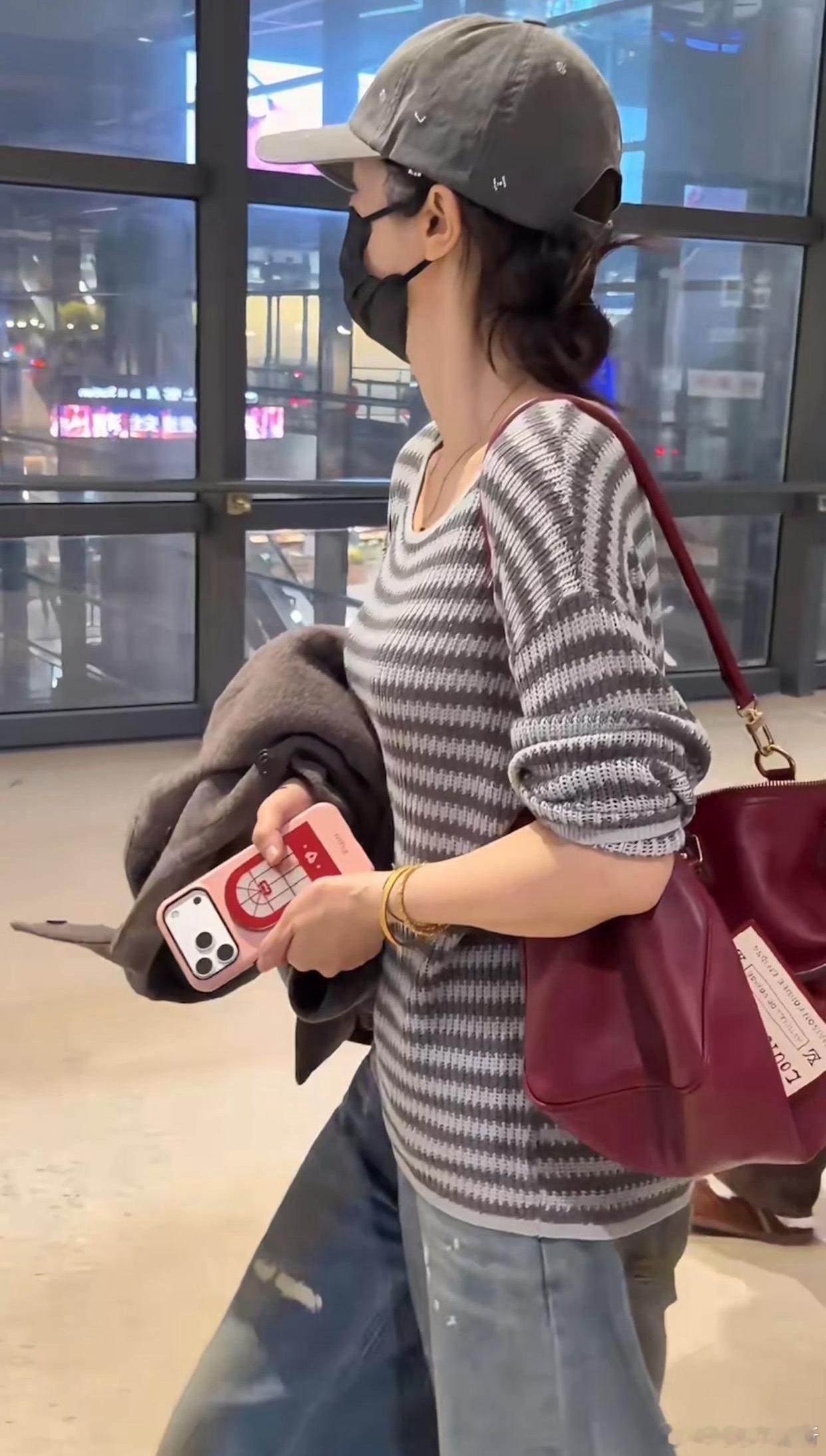 董璇看着不像怀孕啊,小腹很平坦。董璇机场出行,这身造型慵懒大气,穿着条纹针织衫简