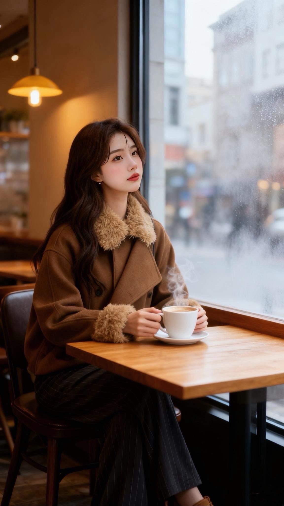 《冬日黄昏里的焦糖色浪漫:她把穿搭穿成了小说主角》 初雪落在梧桐枝桠...