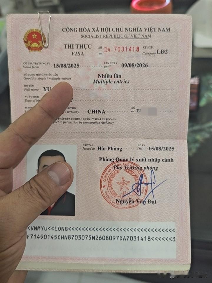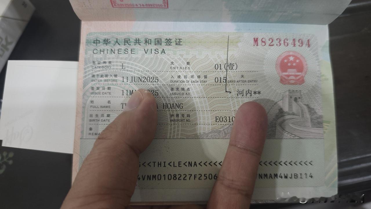 你看人家女孩子这护照,护得多好多干净,再看咱这老爷们儿的护照,护照皮都快秃噜没了,金边都快磨没了,要不看这颜色,还真的会被别人误认为是韩国人日本人啥的。 再看签证,咱中国给其他国家公民发的签证是一张卡片,内容都是很工整的。再看越南给咱的签证,就是一张纸,很朴素的感觉。 越南同事让我带着她的护照去中国,帮她处理一些事情,心也是很大的咧。