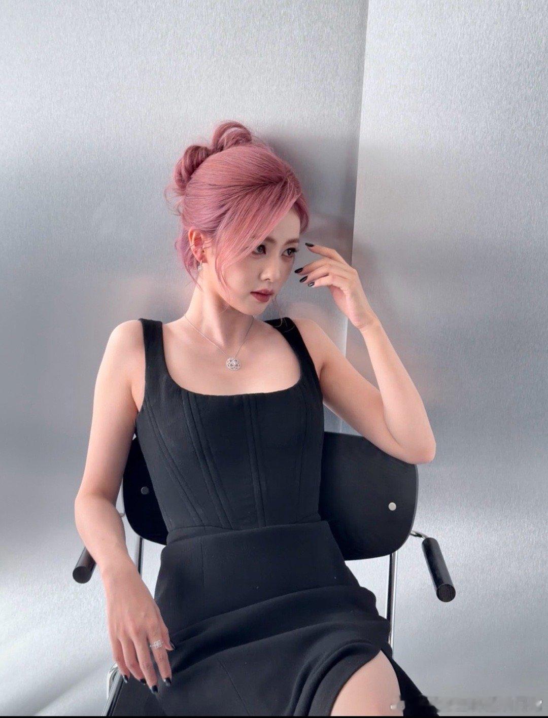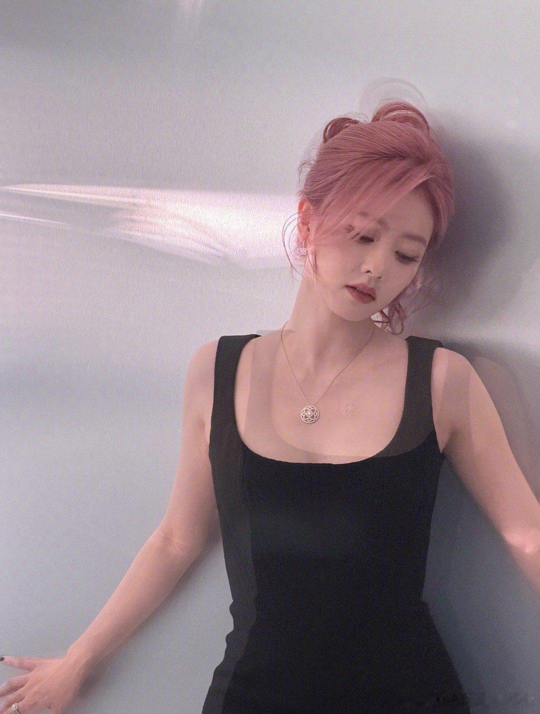 白鹿穿了32年前古董高定白鹿这一身真的鲨疯了!粉发衬得皮肤白到发光,黑色吊带裙