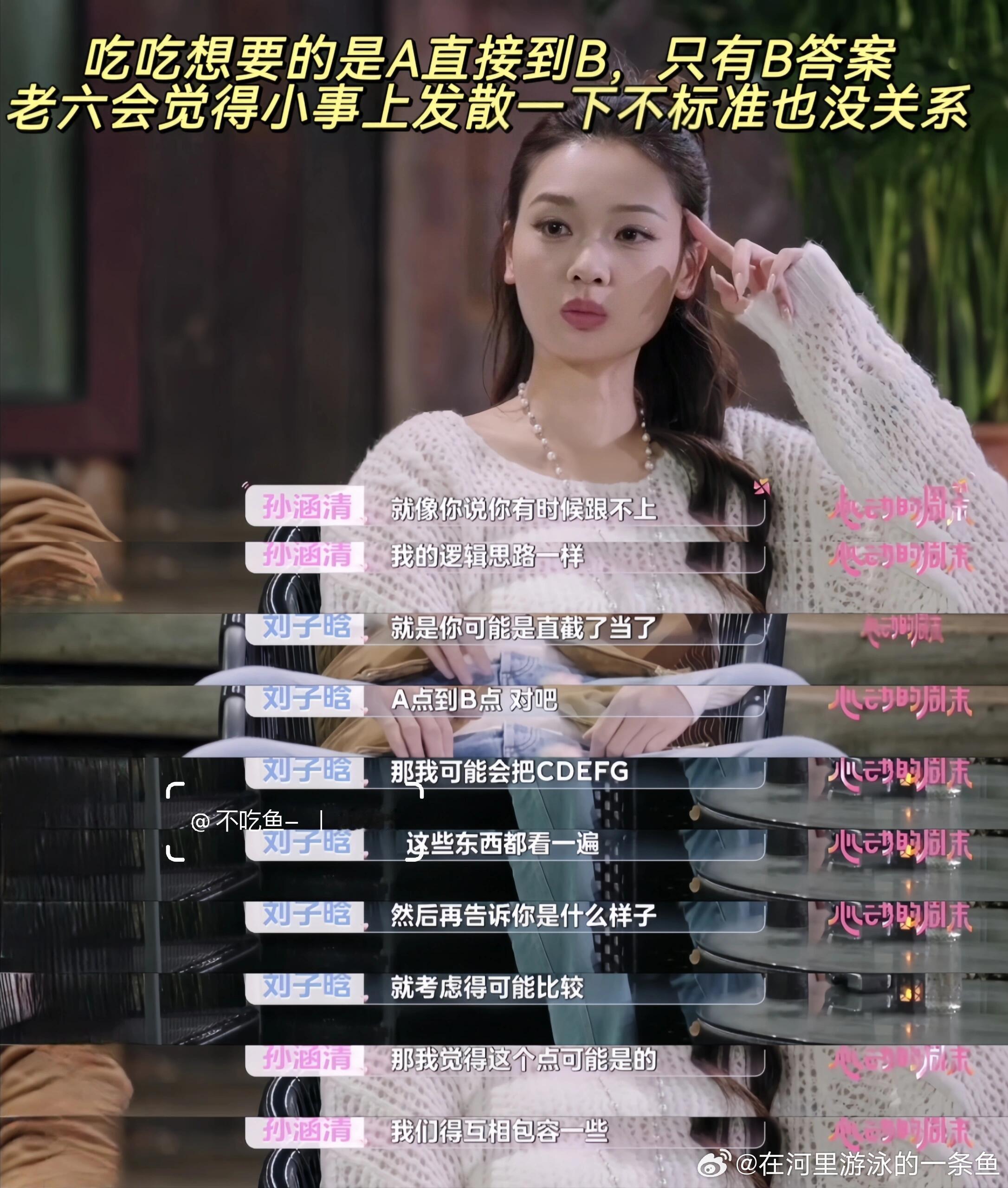 吃吃有时候太着急,太明确。她好像有个标准答案,等着老六对标上来。