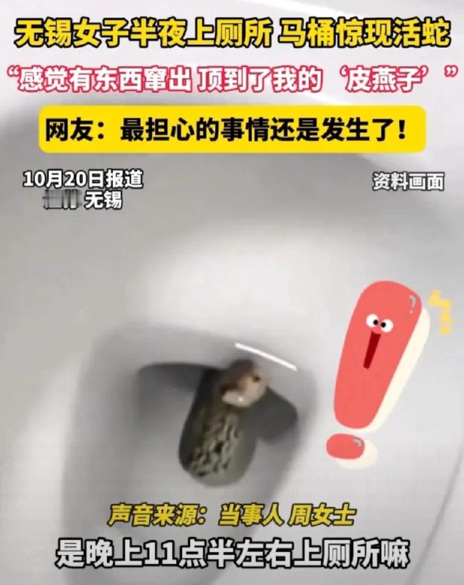 最担心的事情还是发生了!江苏无锡发生惊险一幕:女子半夜上厕所被蛇顶到,连裤子都没