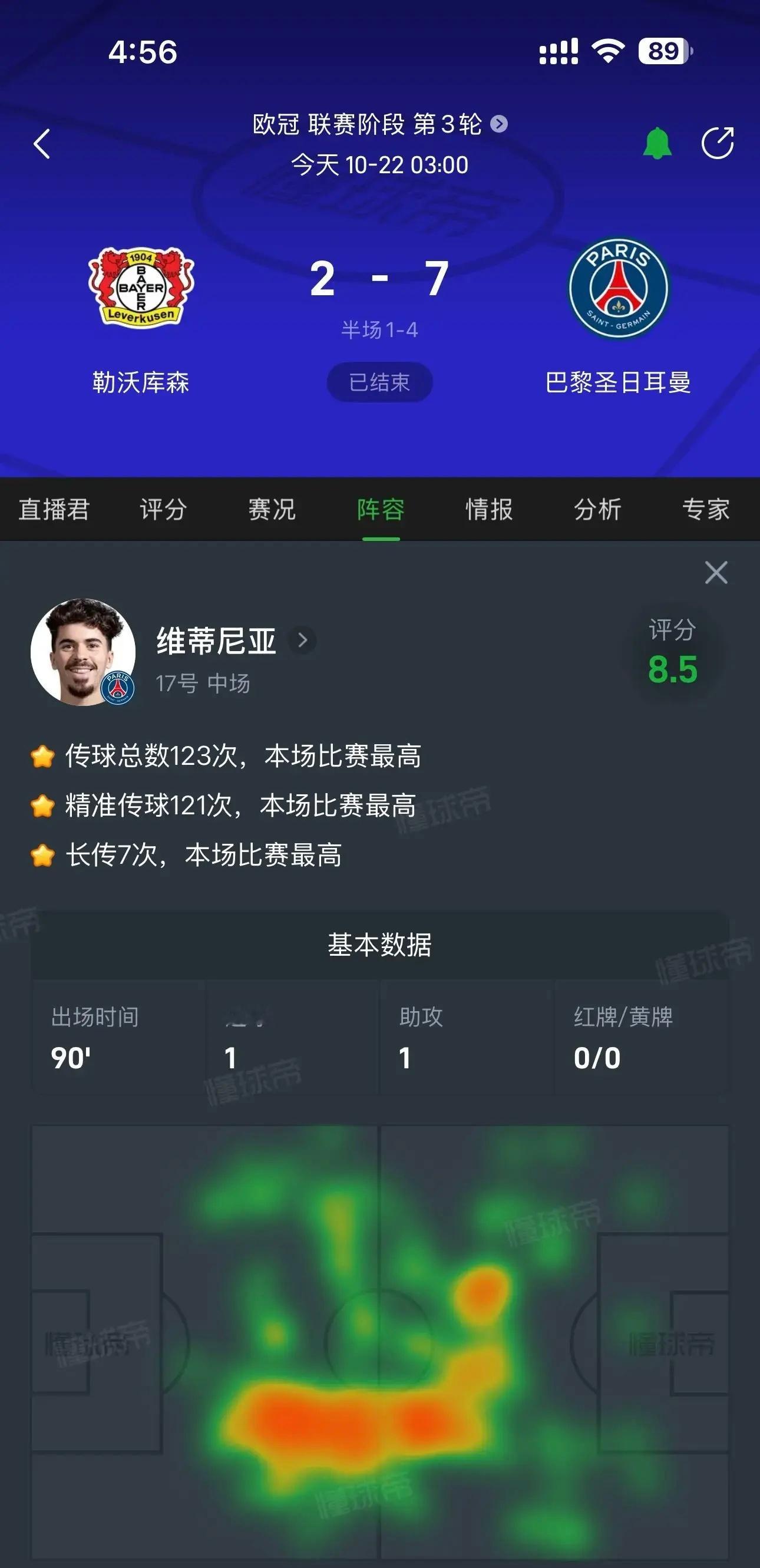 勒沃库森2比7巴黎圣日耳曼巴黎圣日耳曼