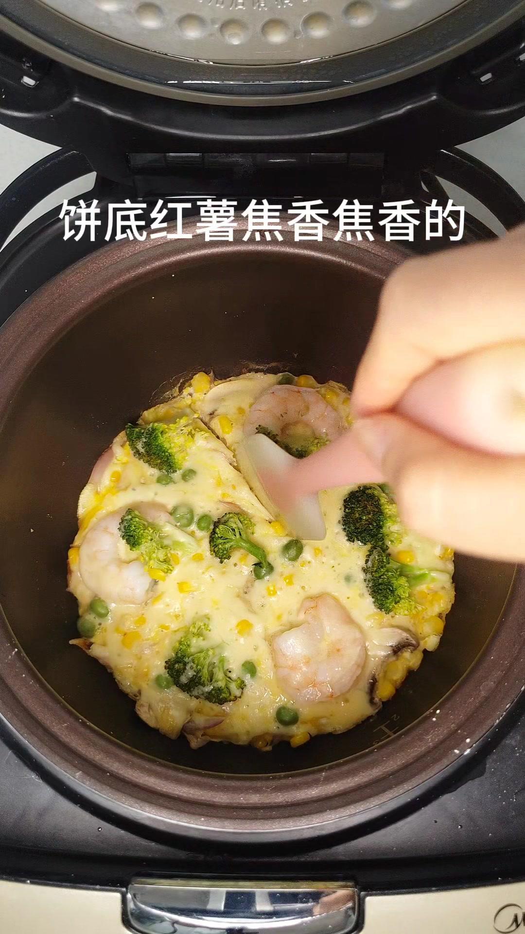 减脂期的披萨自由来啦!🍕减脂期超想吃披萨?试试这个红薯低卡披萨,用红薯做饼底,软糯香甜还低卡,好吃到跳起来! 1️⃣准备食材:红薯削成片,洋葱丝、口蘑片、虾仁、西兰花、芝士适量。 2️⃣制作步骤:电饭煲内胆刷油预热,铺上红薯片,倒入打散的蛋液,再依次放上所有配料和芝士。 3️⃣烹饪完成:盖盖开启煮饭键,15分钟就能出锅,饼底的红薯焦香软糯,配上其他食材和芝士,好吃又解馋。