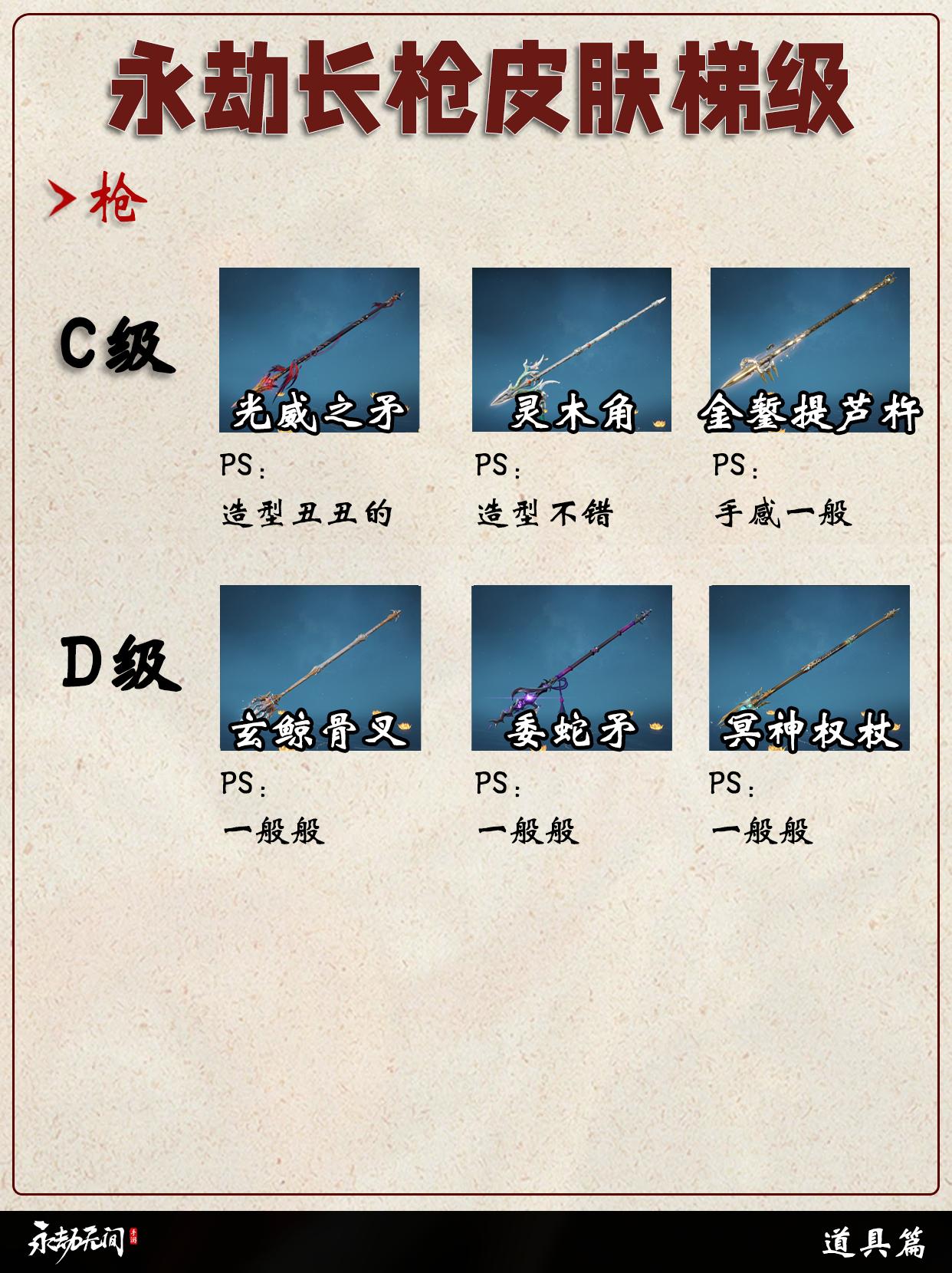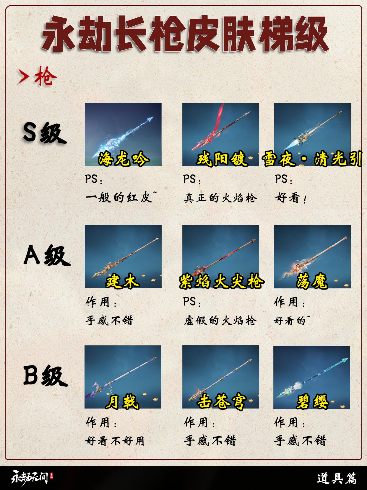 永劫长枪皮肤梯级排行。