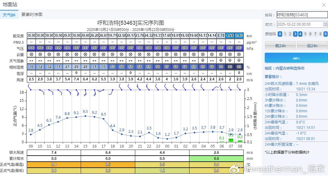 【降雪】今晨在内蒙古中部、山西北部、河西西北部一带,出现降雪或雨转雪。呼和浩特今晨实测为降雨,近地面温度还是相对高一些。从目前预报看,西宁在24日夜间-25日晨也可能迎来今冬初雪。