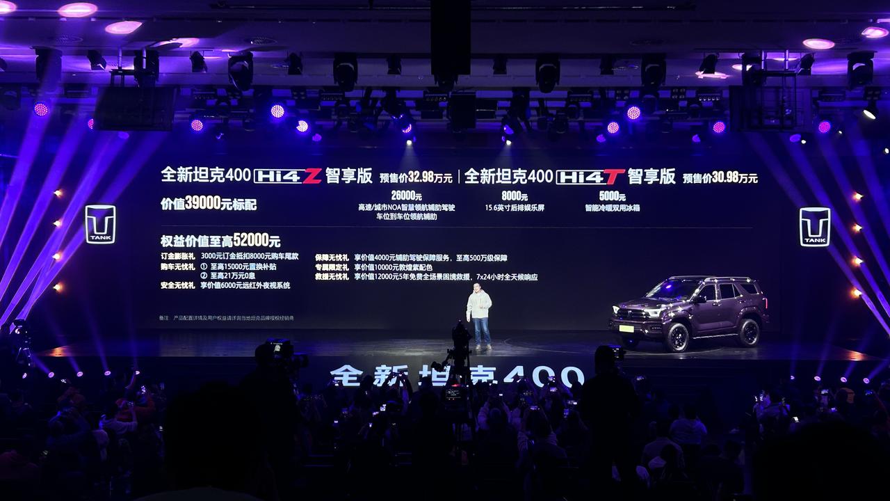 全新坦克400现在已经开启预售,这次推出了2款配置,Hi4-T极致越野和Hi4-Z全能家用,预售价分别为30.98万和32.98万,你更中意哪一款? 新款坦克400还是很懂年轻的朋友啊,定位就是陪伴年轻人闯荡世界、打怪升级的潮酷搭子,连魏总都在预售发布会当天,化身“潮流体验官”,亲身感受年轻人的爱好与节奏。外观高大威猛,酷酷的机甲风,新增敦煌紫配色,很好看。配置往舒适豪华了走,冰箱、彩电、双通风无线充电、15.6英寸后排吸顶屏等都有,后排储物空间也非常充足。车顶配备激光雷达,标配第三代Coffee Pilot Ultra系统,高速/城市NOA领航辅助能力。另外,全系配备越野专用电池,30%-80%充电仅需16分钟,还提供汽、柴、电多元动力版本。 既有越野的全能性能,还有通勤场景的舒适性、设计感。现在订车还有6重福利,以及最多能享5.2万的权益。