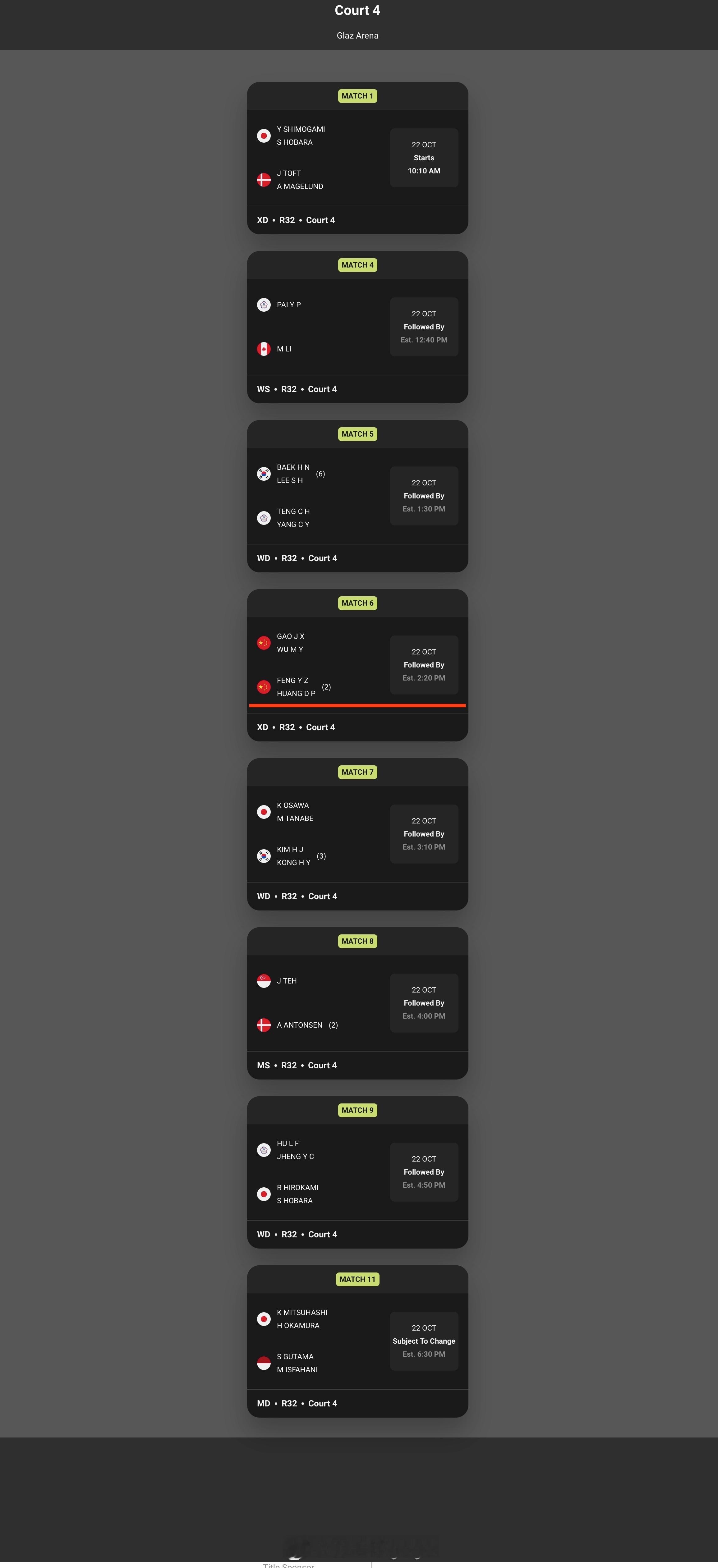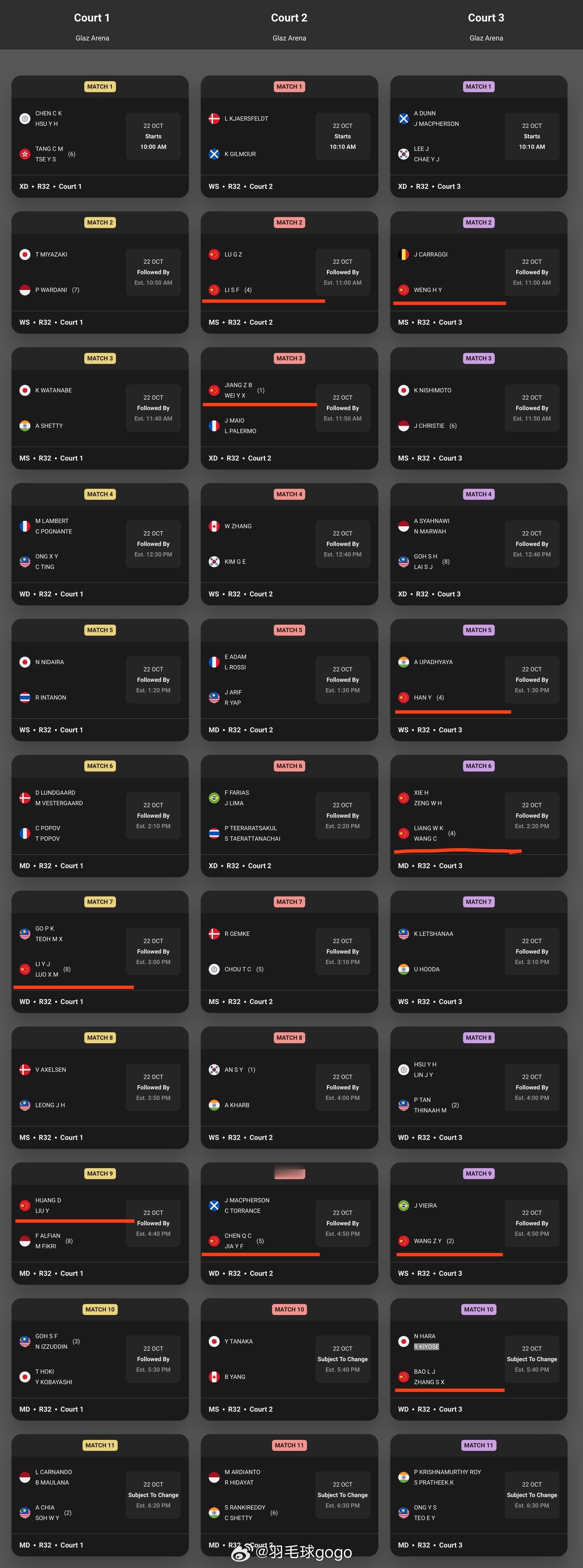 2025年法国羽毛球公开赛 10月22日国羽对阵