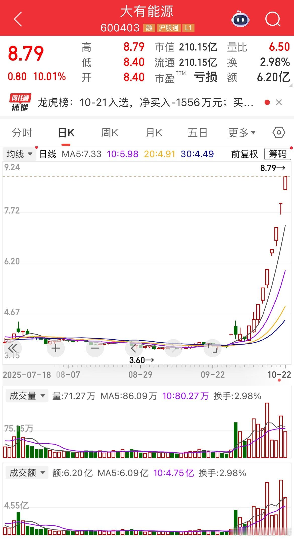 大有能源继续涨停[666]继续持有!