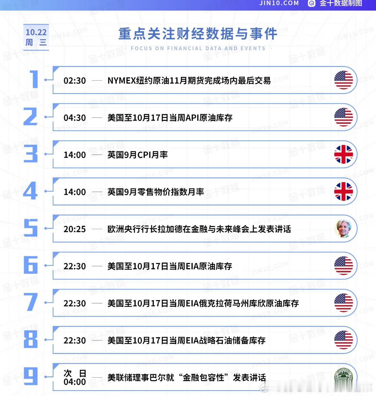 【今日重点关注的财经数据与事件:2025年10月22日 周三】