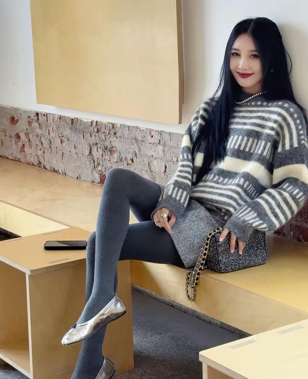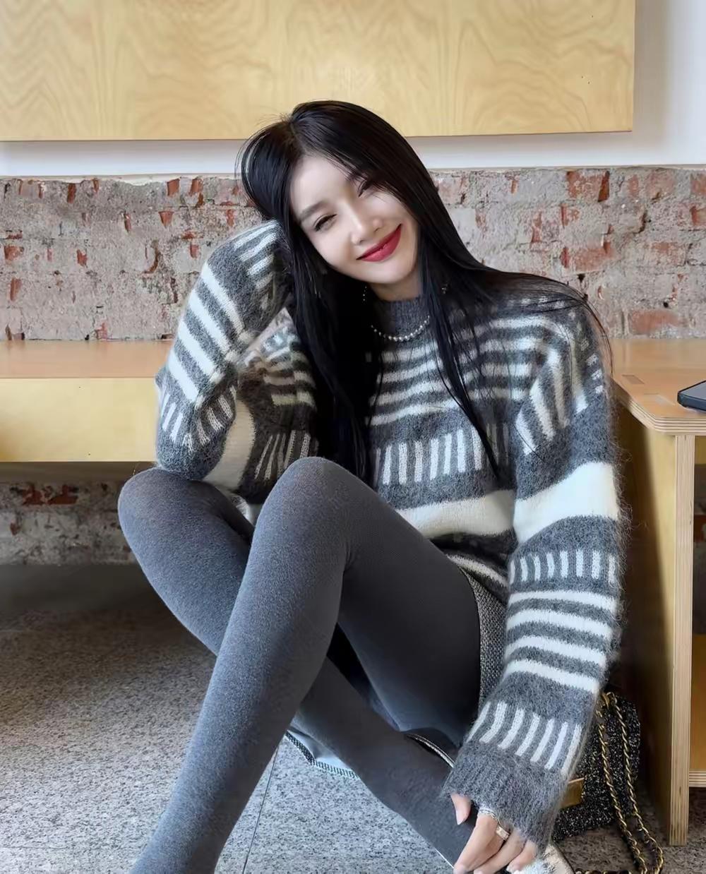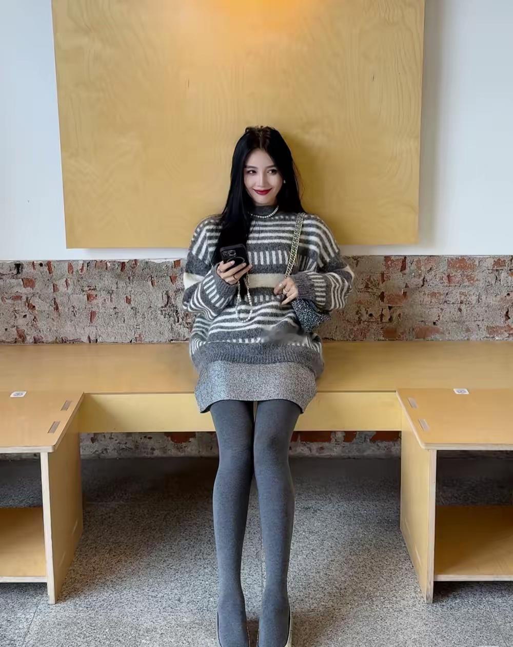 冬日穿搭指南:条纹毛衣+灰色紧身裤,温暖又时尚!🌟👗👢
