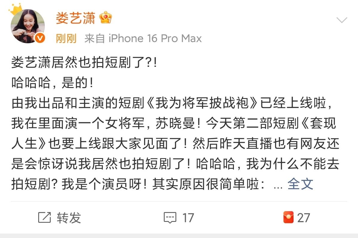 娄艺潇出演短剧娄艺潇二战短剧 娄艺潇《套现人生》快开播啦,期待期待[亲亲]