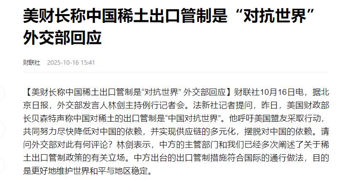 美国可以不让中国进国际空间站,不让荷兰卖光刻机给中国,可以不让伊朗卖石油给中国,可以不让中国电动车进入美国市场,可以……但是不允许中国稀土不卖给美国! 中国在10月升级稀土出口管制,还新增了五种管控的东西,到12月就不让给境外的军事方面供货了。 这消息一出来,不少国家都挺关注,尤其是美国,反应好像特别大。 那稀土到底是啥?简单说,它就像工业里的“维生素”,看着不起眼,但很多重要东西都离不开它。 小到咱们用的手机、电脑,大到飞机、导弹,都得用稀土来做关键零件,要是没了稀土,很多高科技产品可能都造不出来,更别说那些军事装备了。 中国在稀土这事上,一直都挺有话语权,不是咱们吹,全球稀土产量里,中国占了超过 65%,要是说到冶炼分离产能,那占比更高,能到 92.3%。 这意味着啥?就是全世界大部分稀土,都得靠中国来加工成能用的材料,美国在这方面就差远了,他们70%的稀土化合物,还有97%的重稀土,都得从别的国家进口,而中国就是他们重要的来源地之一。 有人可能会问,美国自己不能搞稀土产业吗?或者找盟友帮忙?其实没那么简单。建一条完整的稀土产业链,不光要花很多钱,还得花很长时间。 有消息说,美国要是想自己建,可能得花 2500 亿美元,时间上更是要十年以上。 这么大的投入和这么长的周期,不管是美国本土企业,还是他们的盟友,短期内都很难替代中国在稀土领域的地位。 中国这次升级稀土出口管制,本来就是咱们的权利,每个国家都有权根据自己的情况,对重要的资源出口进行管理,这是国际上很正常的做法,可美国却不乐意了,还出来说三道四,这就有点说不过去了。 大家想想,美国自己在很多领域搞管制的时候,怎么不说自己不对?比如之前对中国的高科技企业,又是限制技术出口,又是搞各种制裁,理由一套一套的。 现在中国只是正常管控稀土出口,他们就跳出来反对,这不就是典型的“只许州官放火,不许百姓点灯”吗? 其实美国一直以来在很多国际事务上都挺霸道的,总觉得自己说的算,别人都得听他的。但这次在稀土问题上,他们的霸道好像不管用了。 因为中国在稀土领域的优势摆在这,不是他们随便说几句就能改变的。 可能有人会担心,中国这么做会不会影响到其他国家?其实完全没必要,中国的管控不是随便来的,主要是为了保护自身的资源安全,还有环境安全。 而且咱们也不是完全不让出口,只是更规范了,那些合法合规的民用需求,还是能得到满足的。 这些年,中国在稀土产业上也一直在进步,以前可能更多是卖原材料,现在咱们在稀土的深加工、高端应用领域也发展得越来越好。 这不仅能让咱们的稀土资源发挥更大的价值,也能更好地应对国际市场的变化。 美国要是真的觉得稀土依赖中国有问题,那应该好好想想怎么合理发展自己的产业,而不是一味地指责中国。 毕竟在全球化的今天,合作才是共赢的出路,搞双标、耍霸道,最终只会让自己陷入被动。 中国管控稀土,是行使自己的正当权利,也是为了更好地维护国家利益和全球产业链的稳定。 美国的双标在这件事上失效,也说明时代在变,那种霸权主义的一套已经越来越行不通了。 未来,只有平等相待、互利合作,才能在全球资源领域实现真正的共赢,这才是大势所趋。