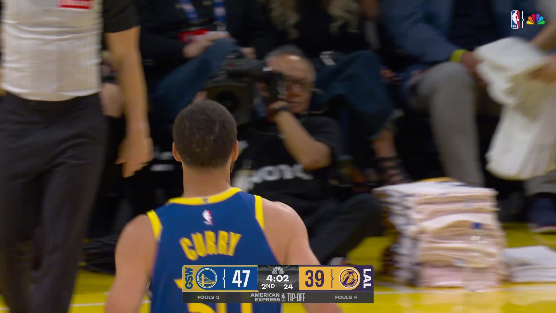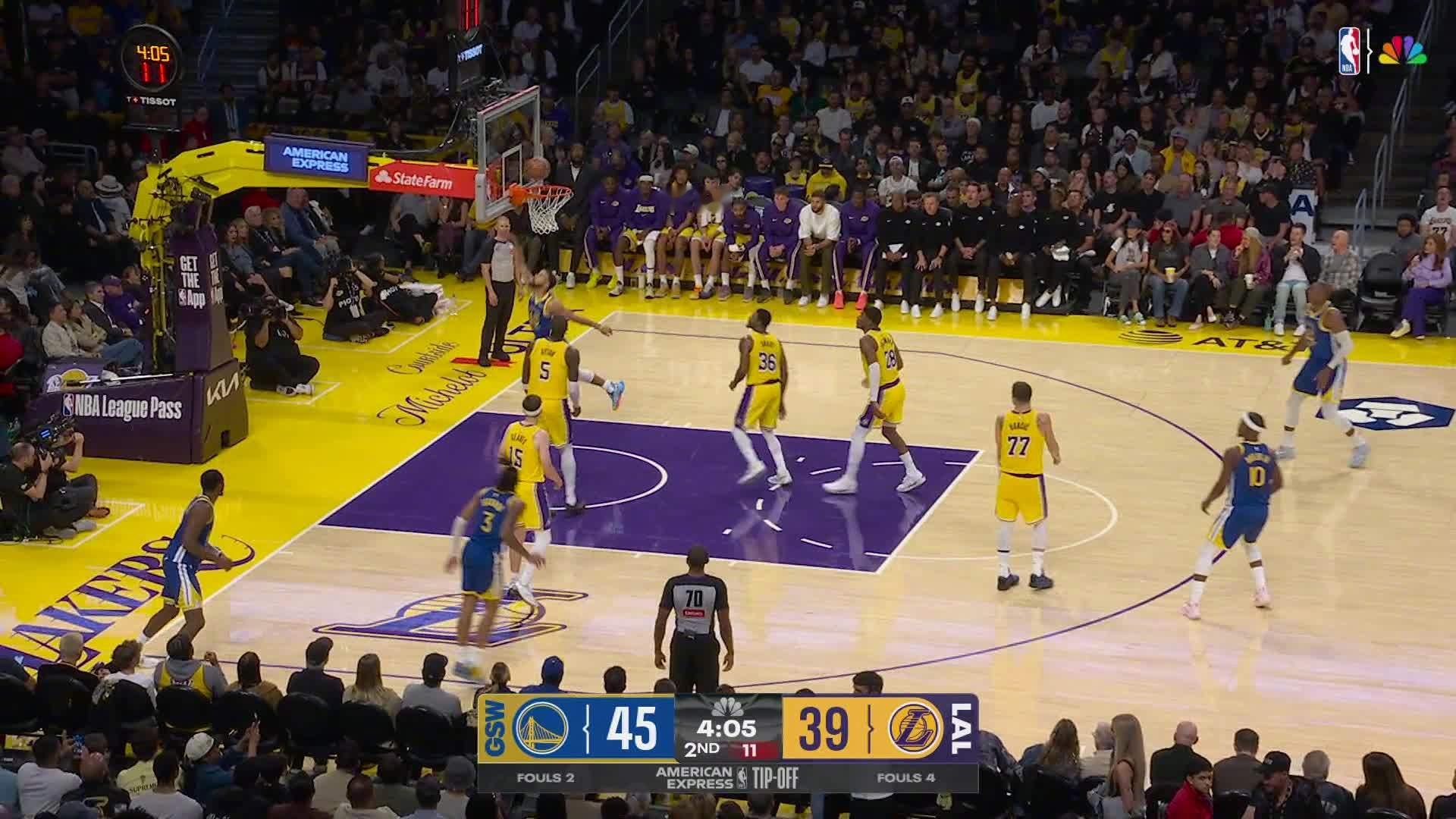 Smooth!库里接巴特勒助攻两分入账!!勇士49:41湖人。勇士vs湖人湖勇大