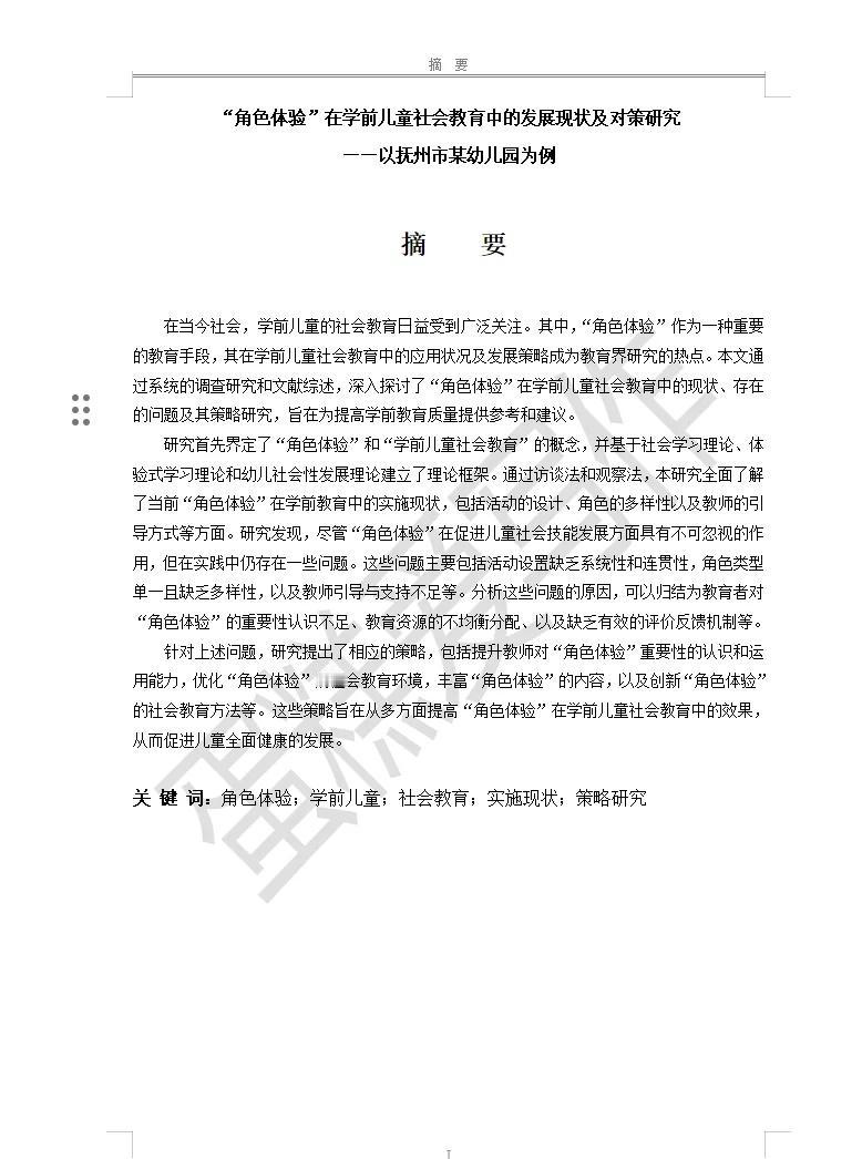 角色体验在学前儿童社会教育中的发展现状 浪漫生活的记录者 “角色体验”在学前儿童
