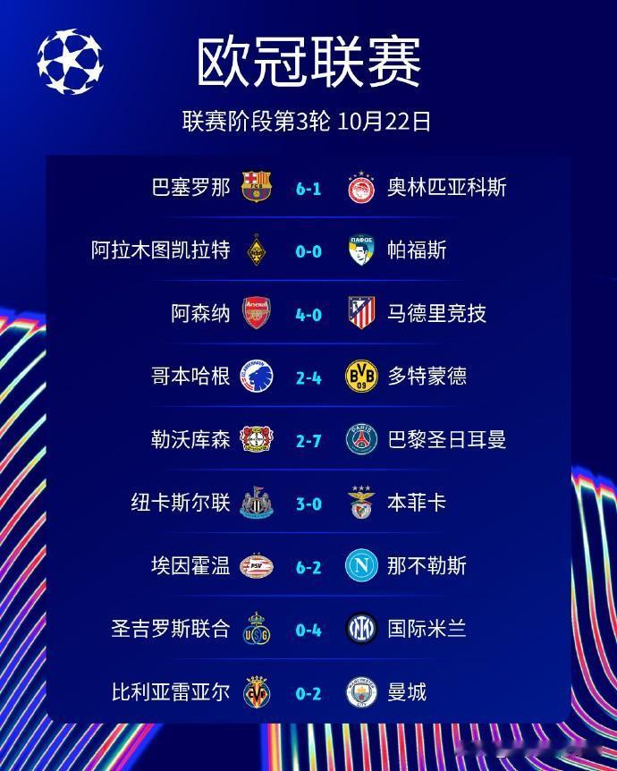 足球:欧冠联赛阶段第3轮第1比赛日赛果 疯狂的一夜,9场比赛43球! 这一夜的欧冠联赛,你心中最精彩的一场比赛是?