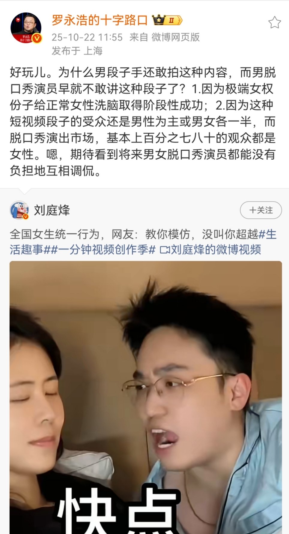 罗永浩谈男脱口秀演员创作罗永浩谈脱口秀观众群体罗永浩说脱口秀大部分观众为女性,希望男脱口秀演员以后创作能没负担......