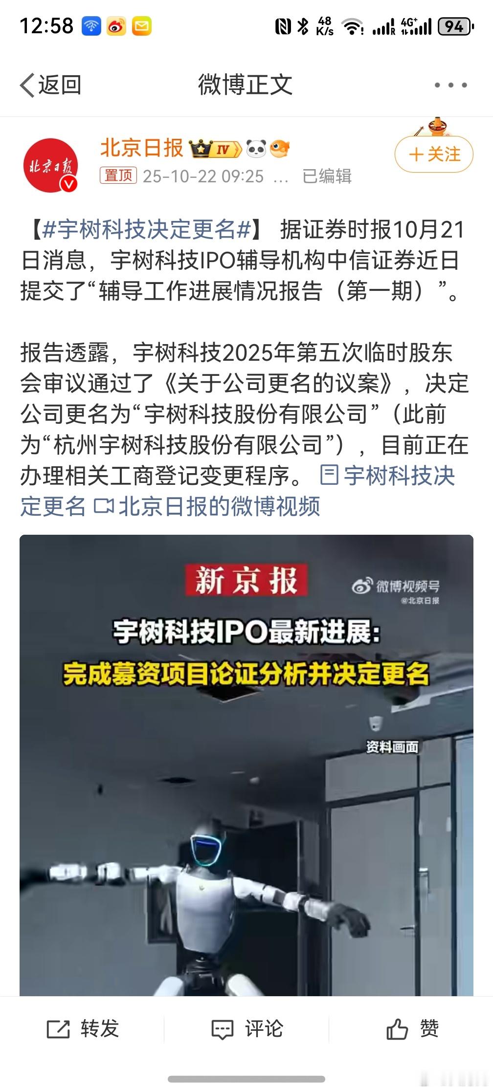 宇树科技决定更名 ,看,这意思是要走出杭州冲向国际了,也挺好的,先进的技术就应该展现给全世界。[doge]
