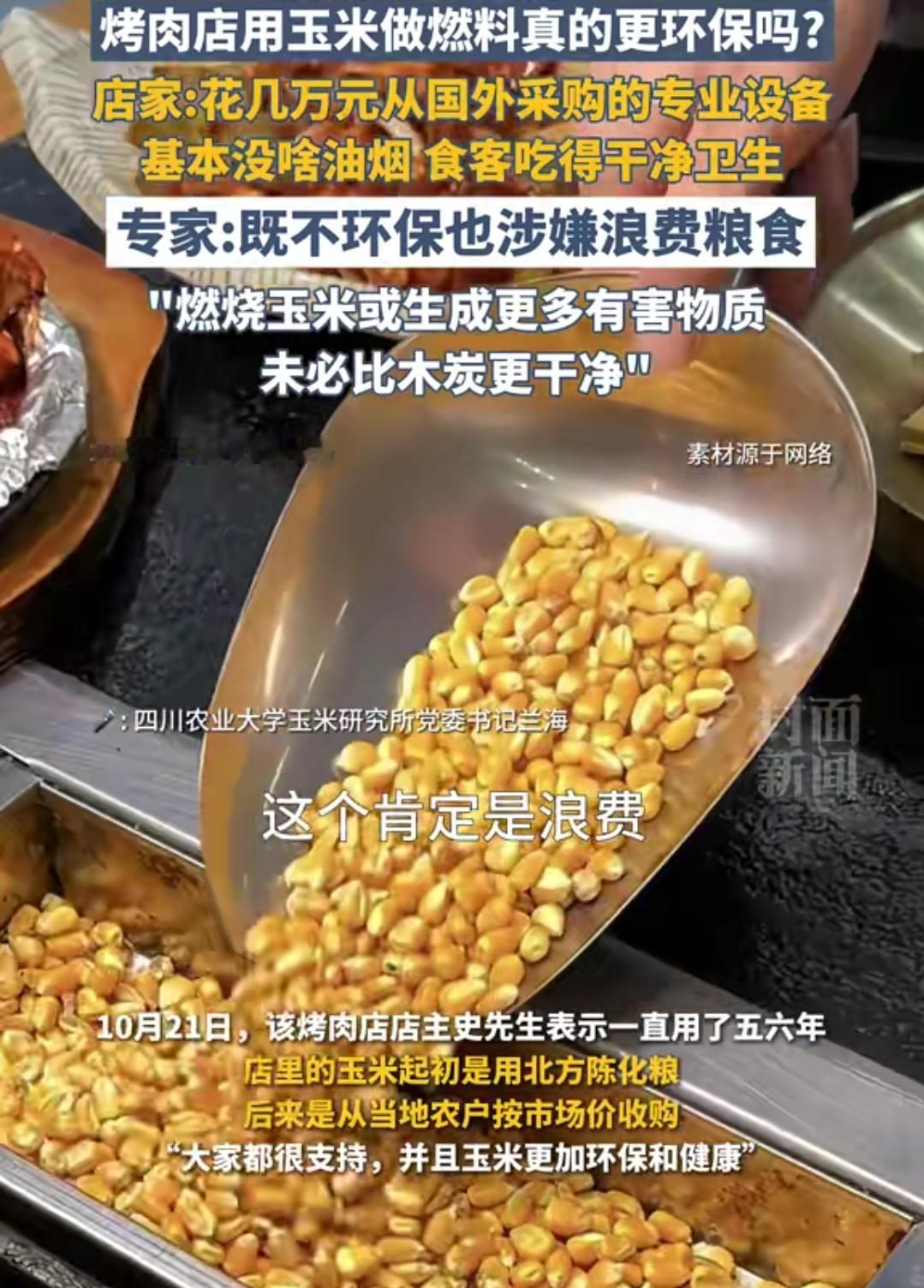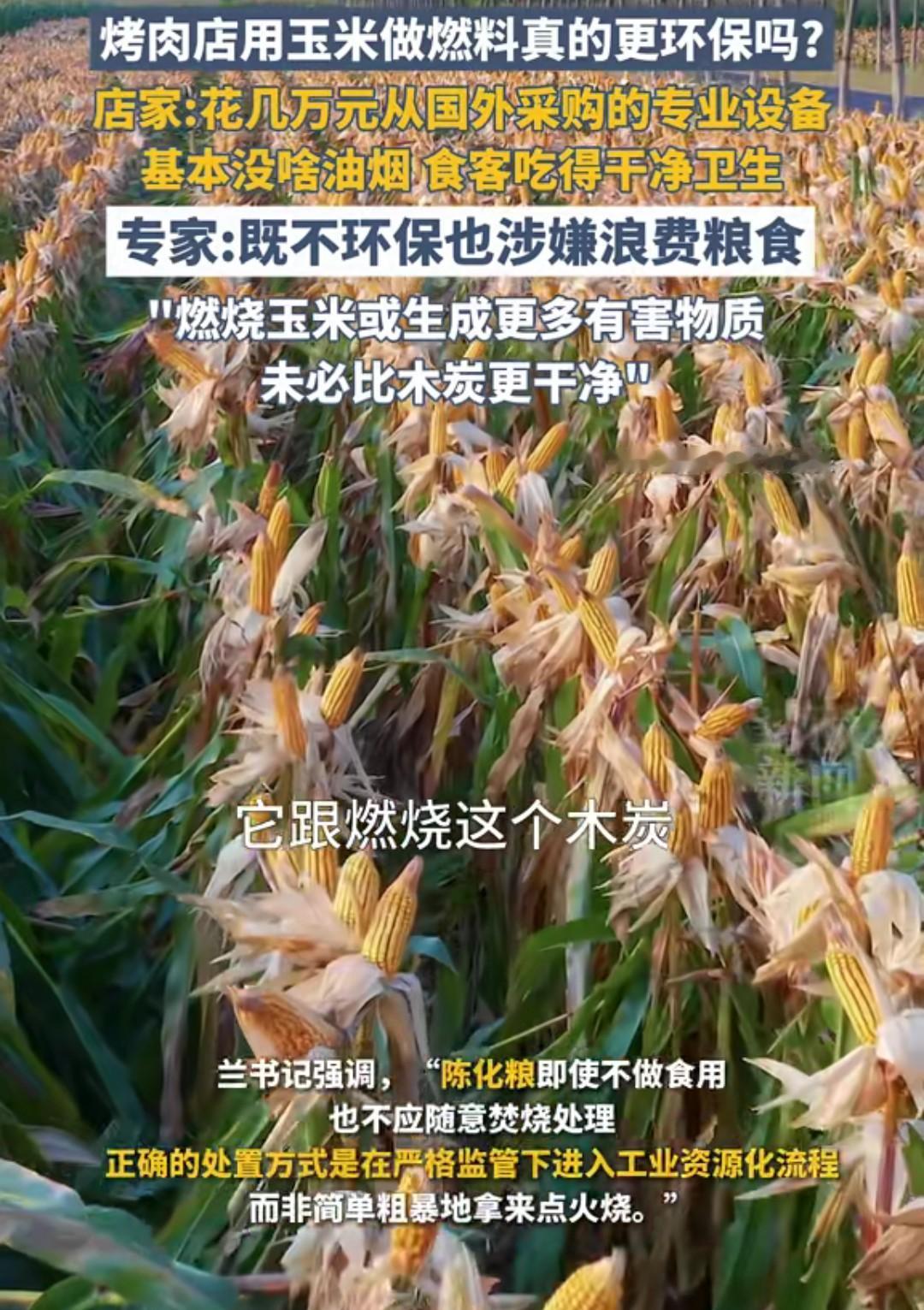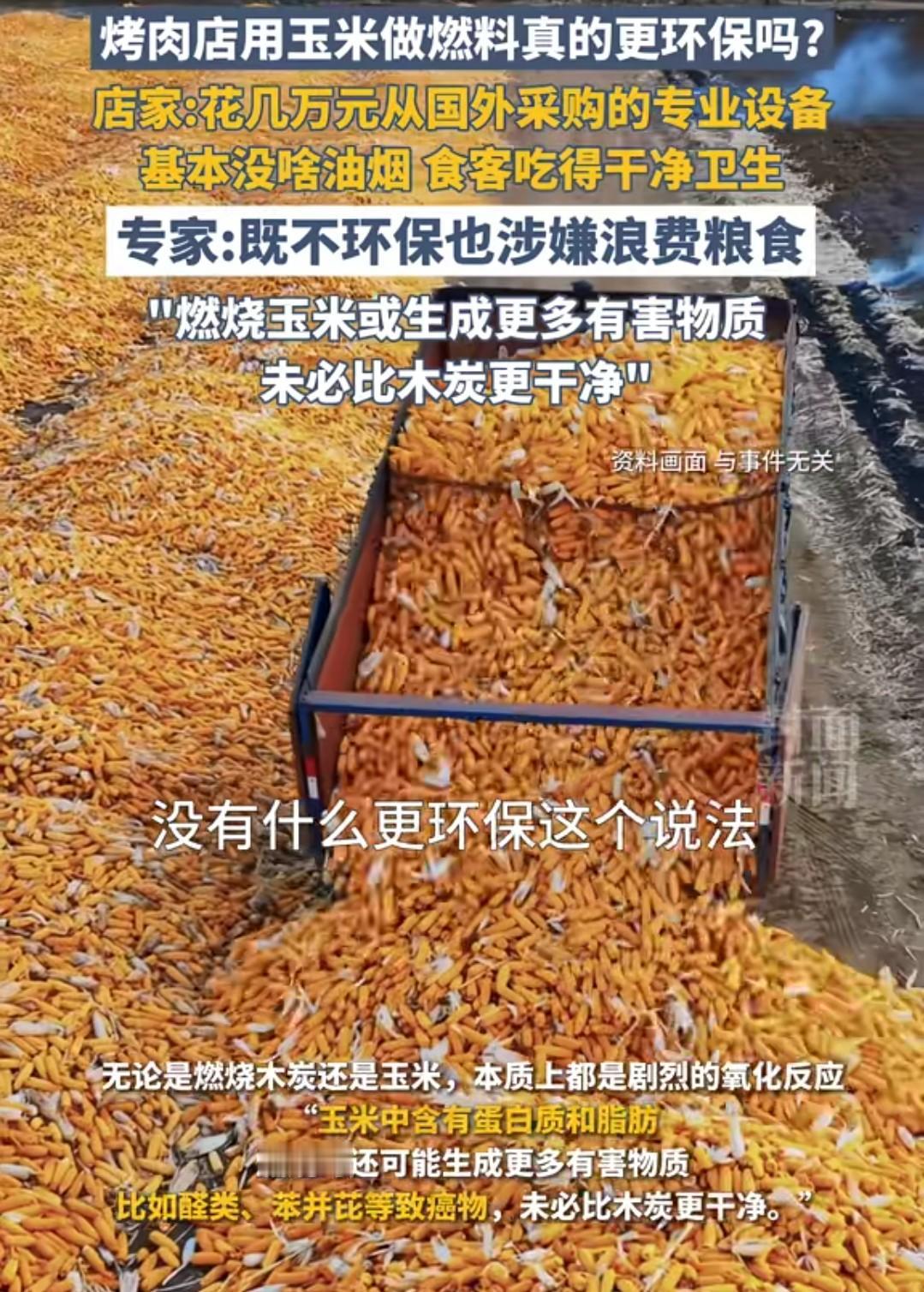近日,山东烟台一家烤肉店用玉米作燃料引起争议,被指责浪费粮食,不过也有人表示理解