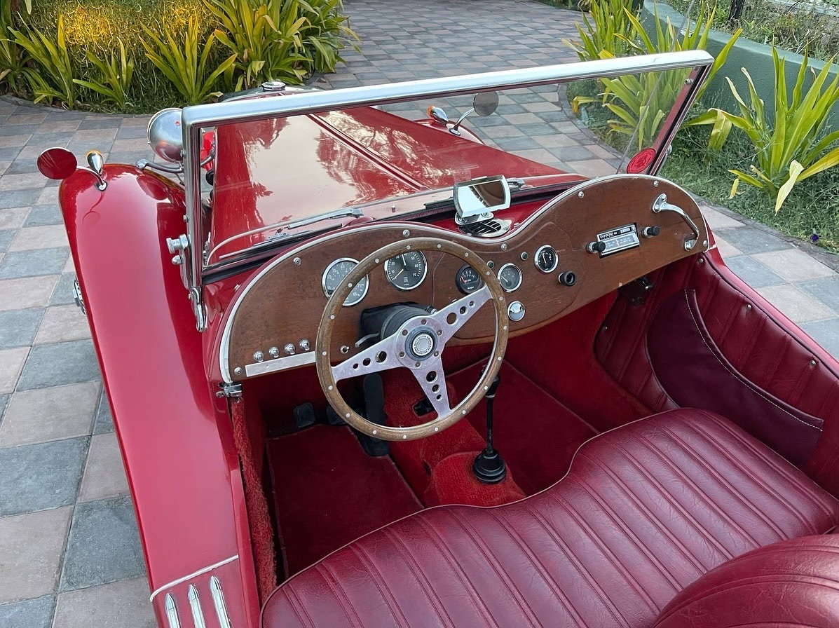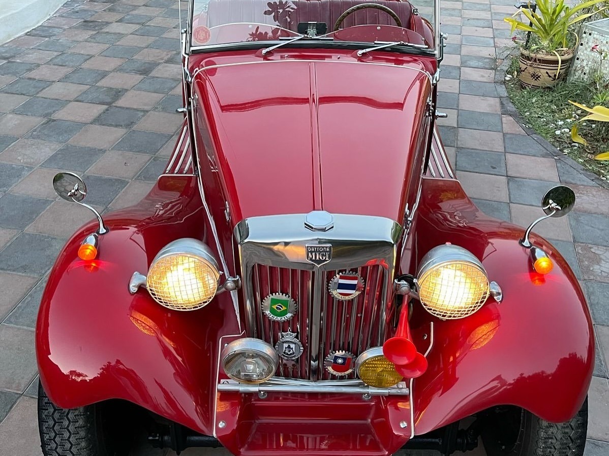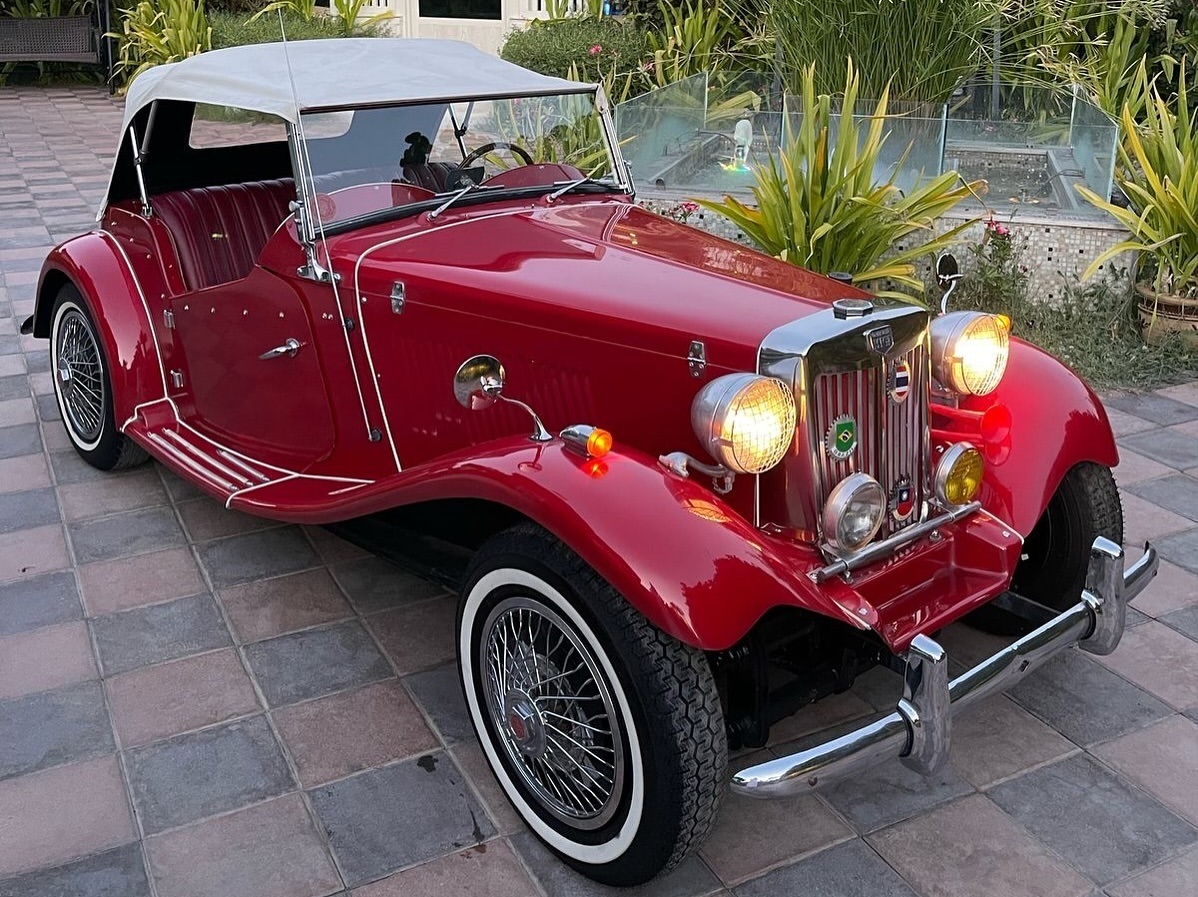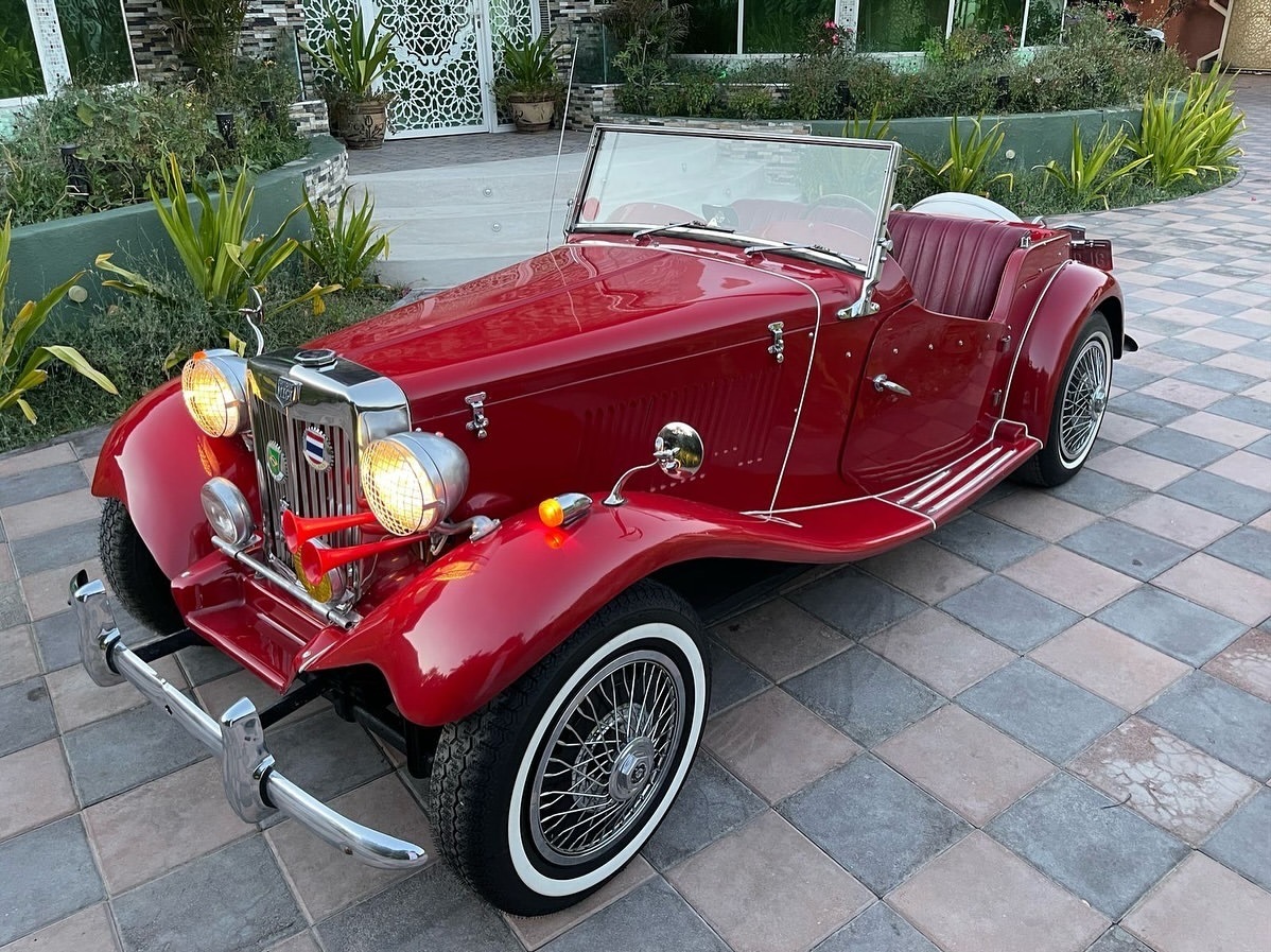 这辆红酒配色的MGTD真不愧是古董敞篷车中的代表作,原装右舵英伦风格堪称穿越时