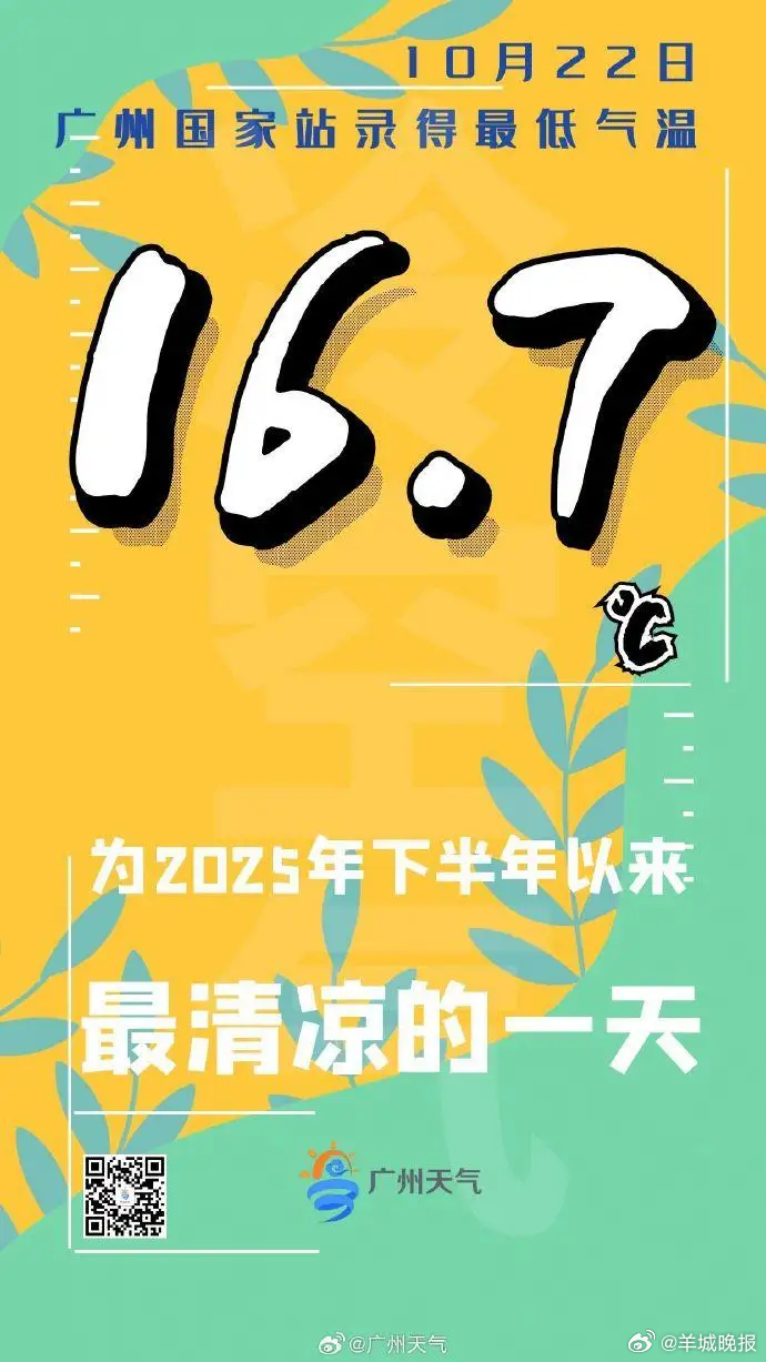【粤北今晨最低12.5℃,#广州录得下半年以来最低气温#!24日起广东大部有望气温回升】受台风“风神”和中等强度冷空气共同影响,广东气温持续走低。在广州,广州国家基本气象站在10月22日早晨,录得今年下半年以来最低气温。