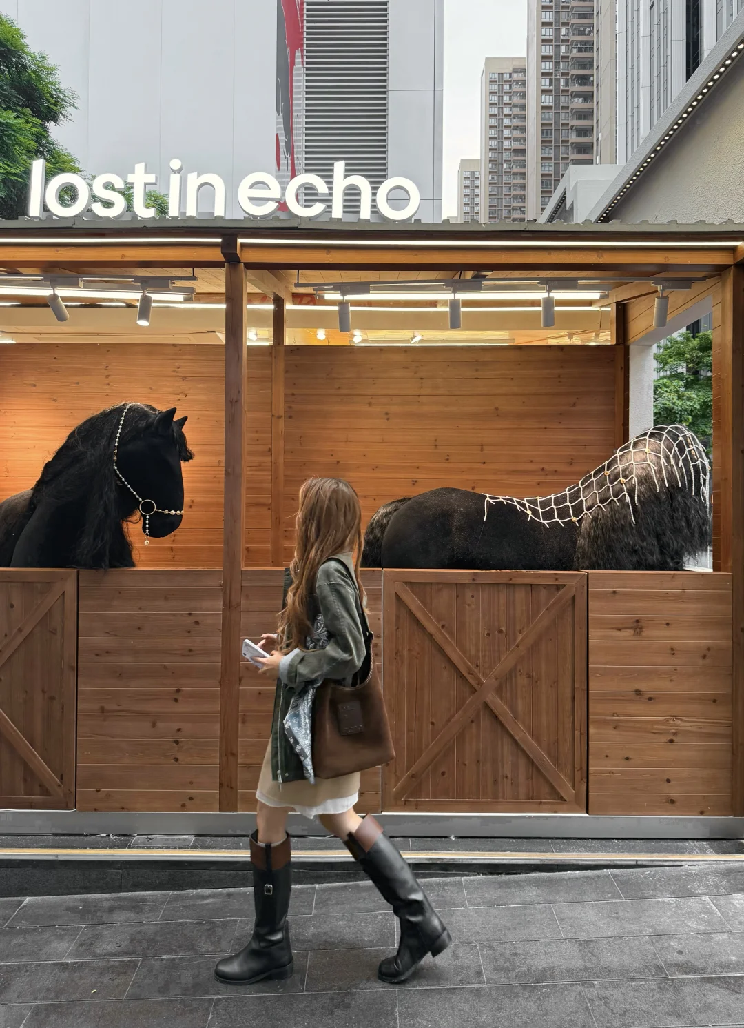 也就万象天地能想出来这个创意 马儿逼真的吓了我一跳 仔细一看原来是lost in echo快闪 华南首展也是被我逛到了 进去逛了一圈 太喜欢这种自由荒野浪漫的氛围 我的这个长靴太帅了 超显腿细!! 对了马儿这次一直到12月14号都在营业的 不用担心拍不到啦