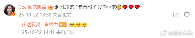 宋妍霏喊庄达菲小孩 回复了的生日祝福~这句“爱你小孩”有点暧昧了[期待]两位美女友谊长存呀!!
